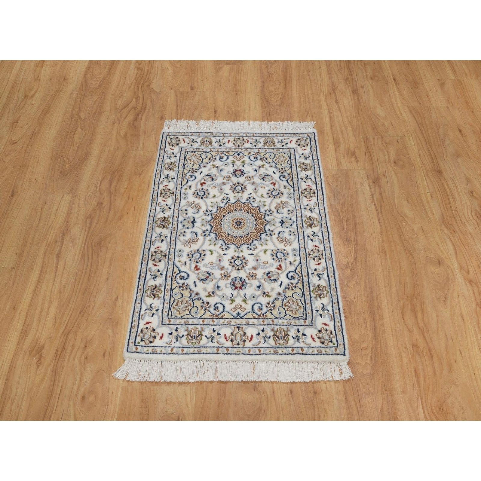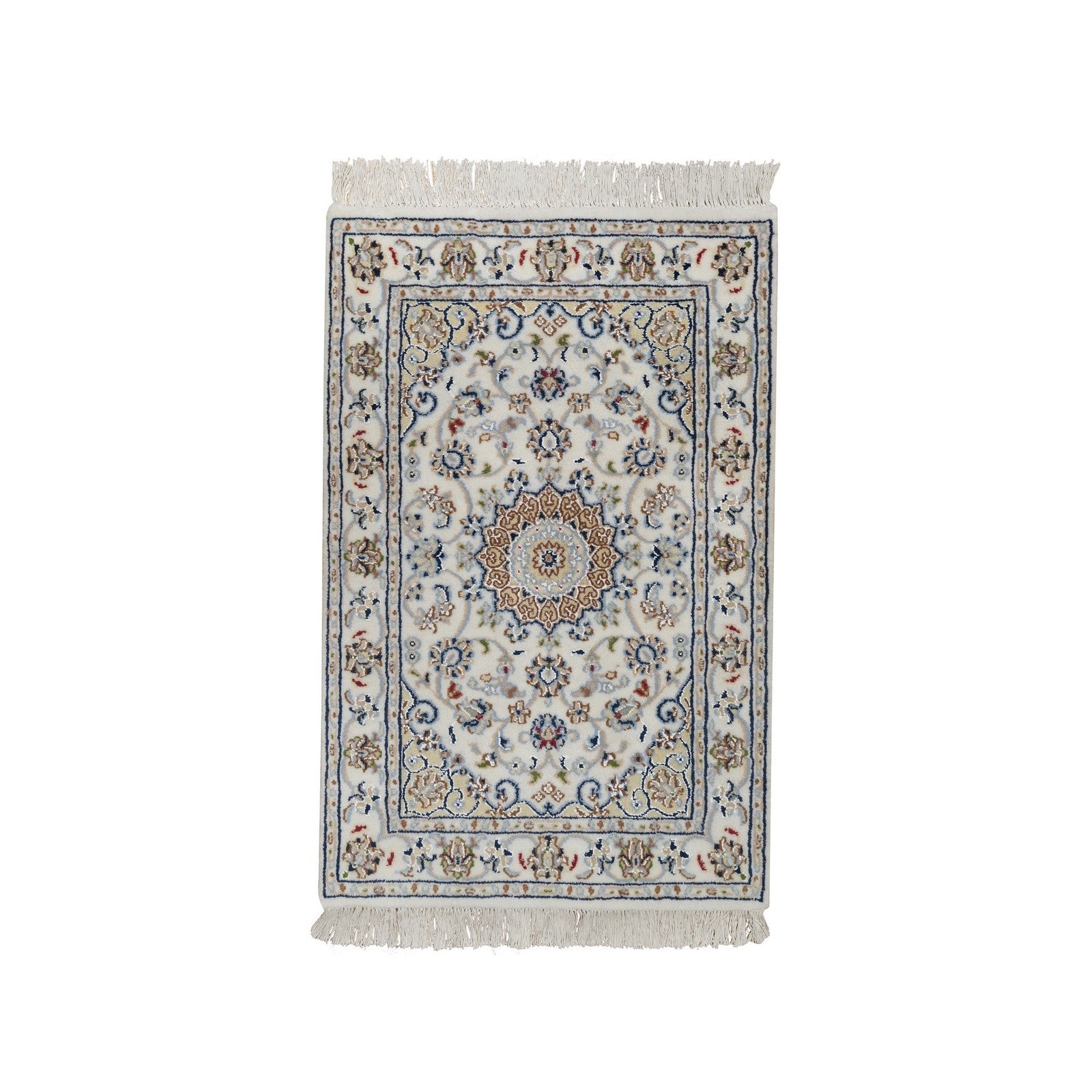 2'X3'1" Ivory Nain With Flower Design Hand Knotted Wool And Silk Mat Rug