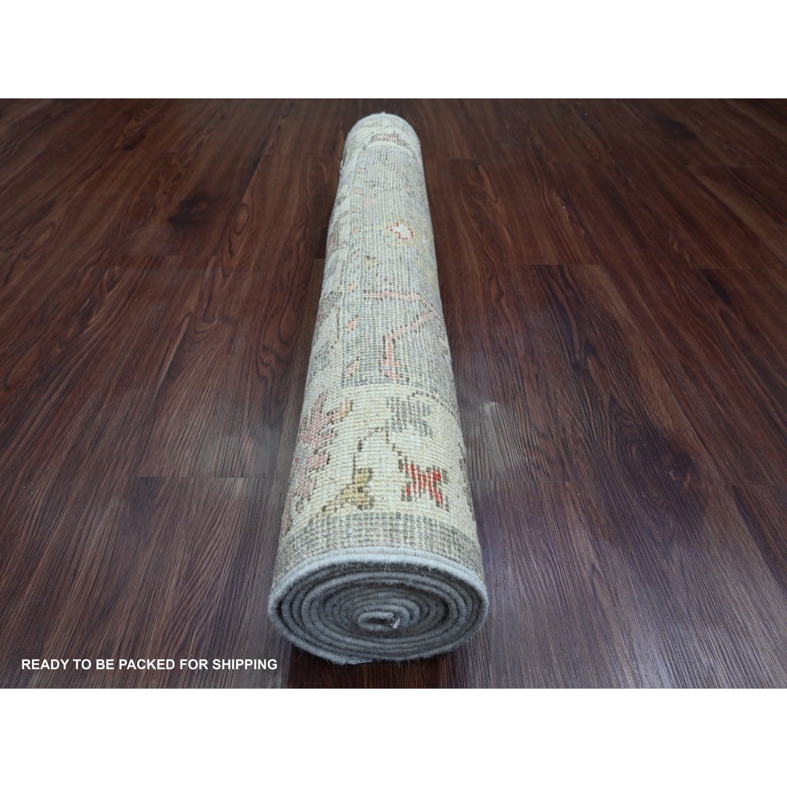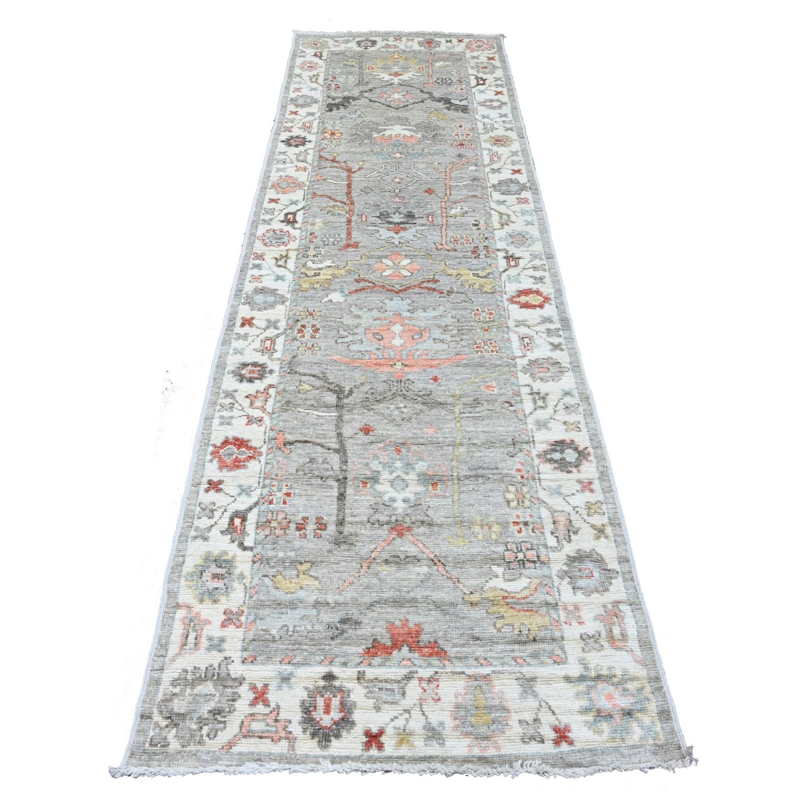 3'X10' Medium Gray Afghan Angora Oushak Hand Knotted Pure Wool Runner Rug