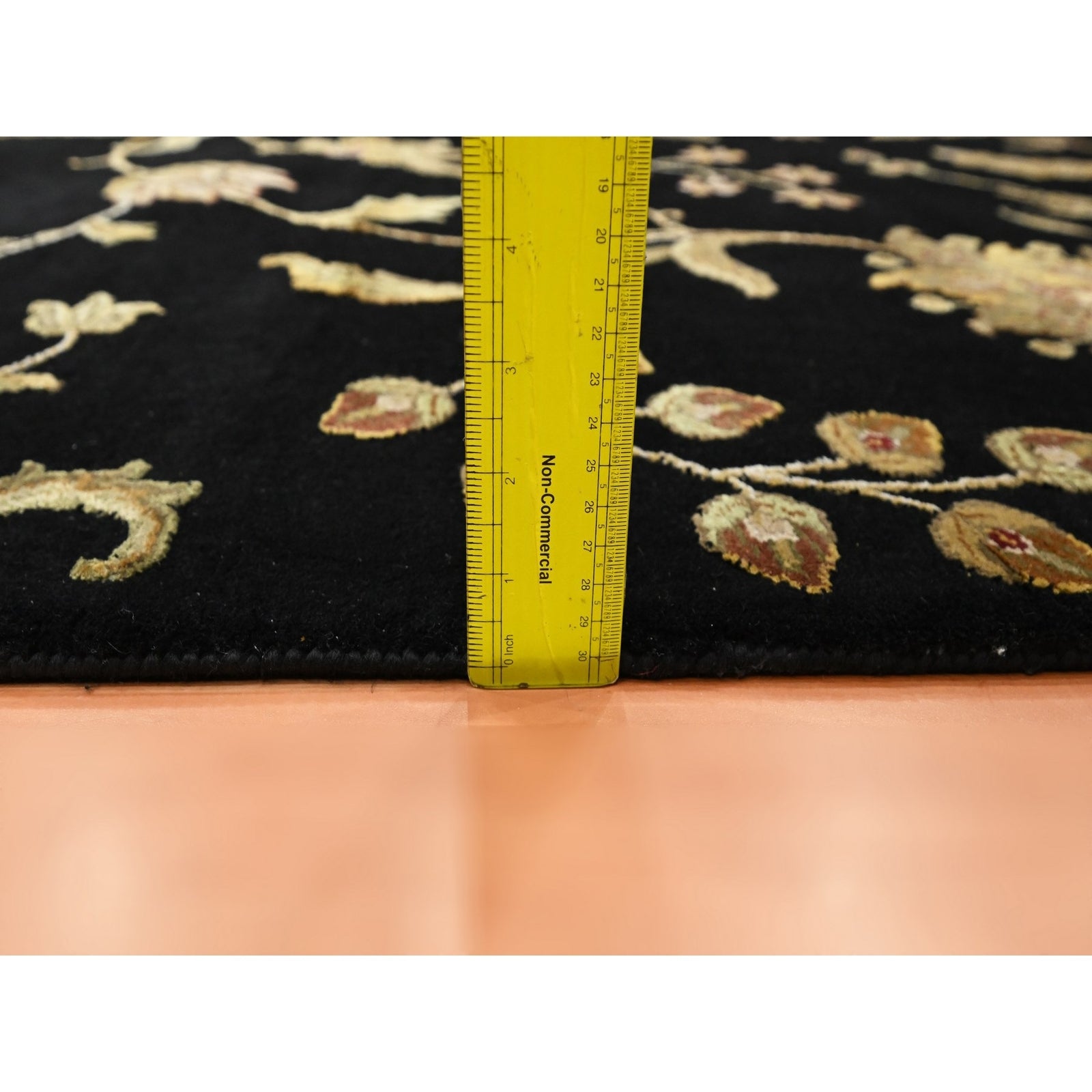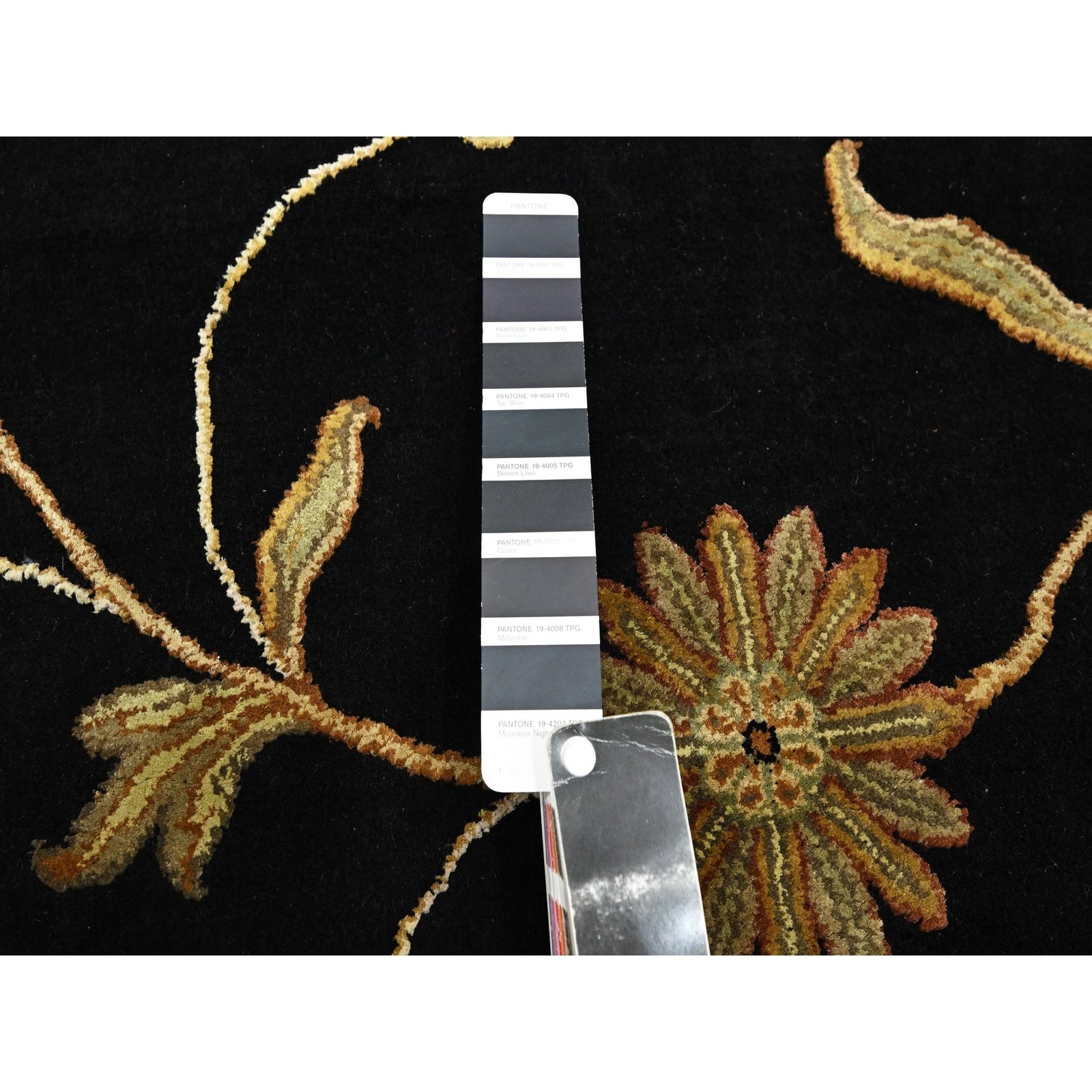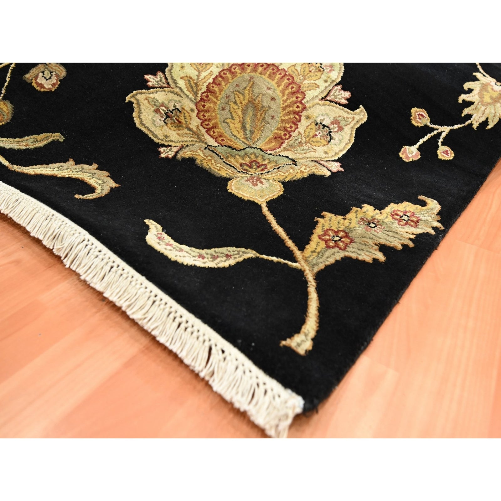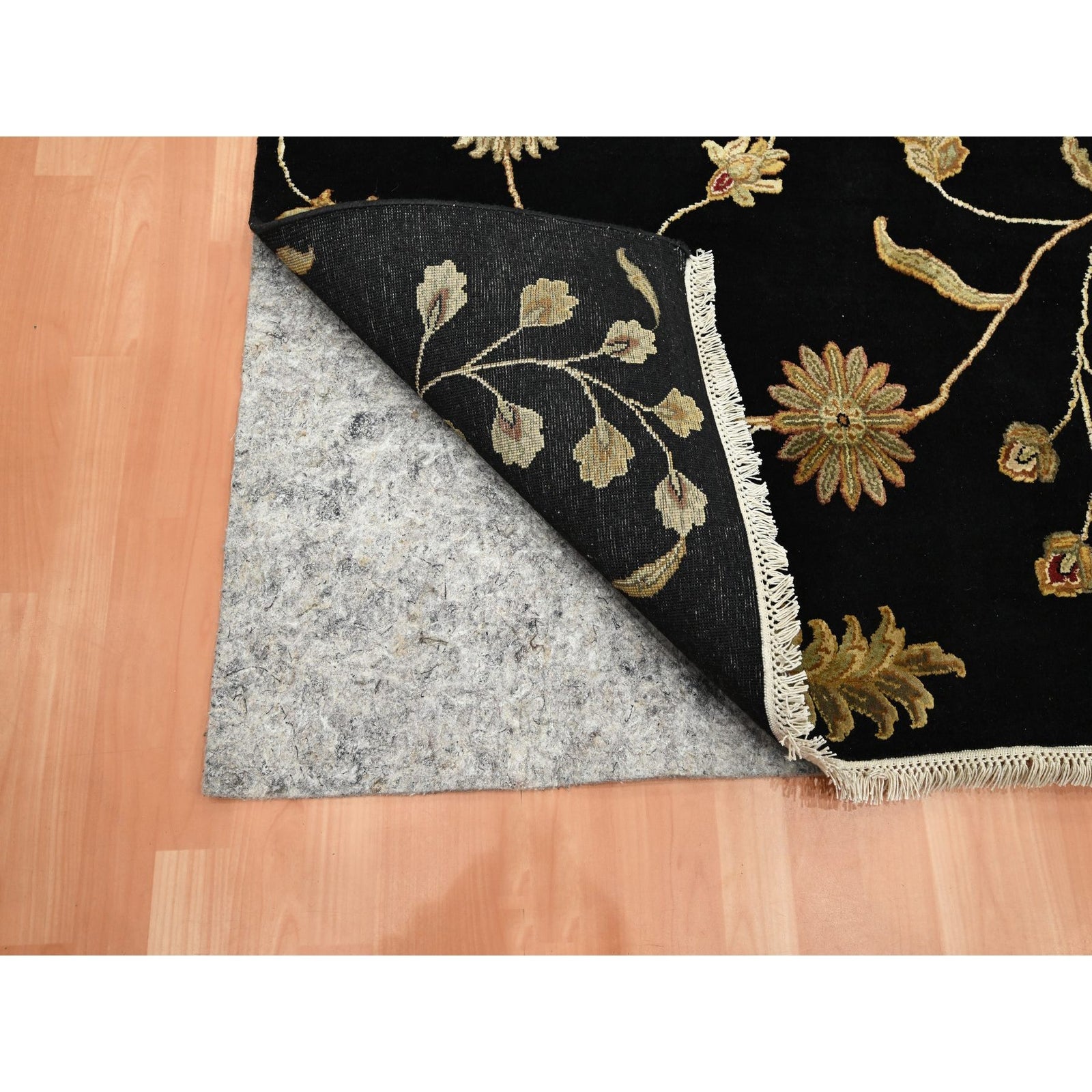 5'10"X8'10" Black Botanical Design Wool & Silk Hand Knotted Oriental Rug