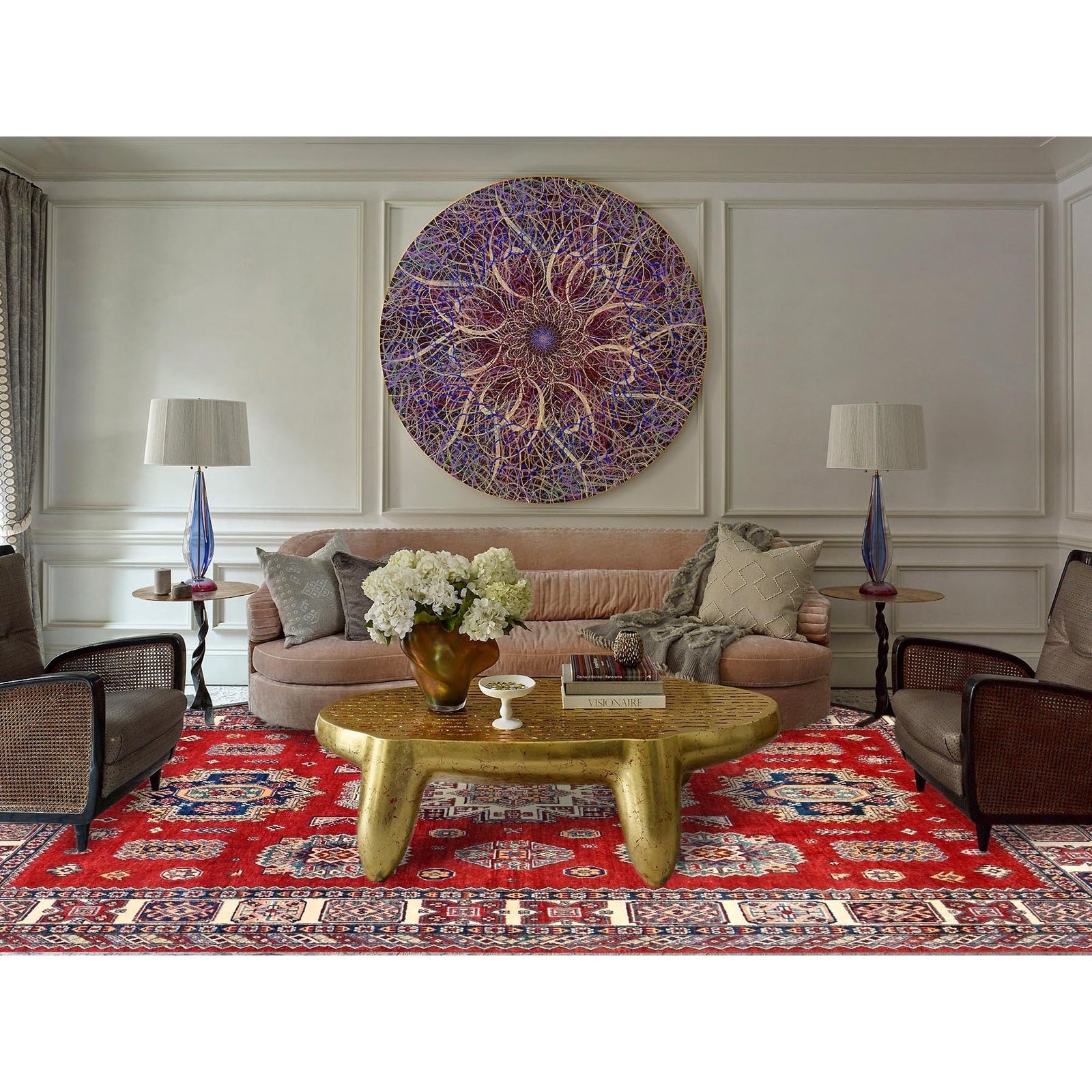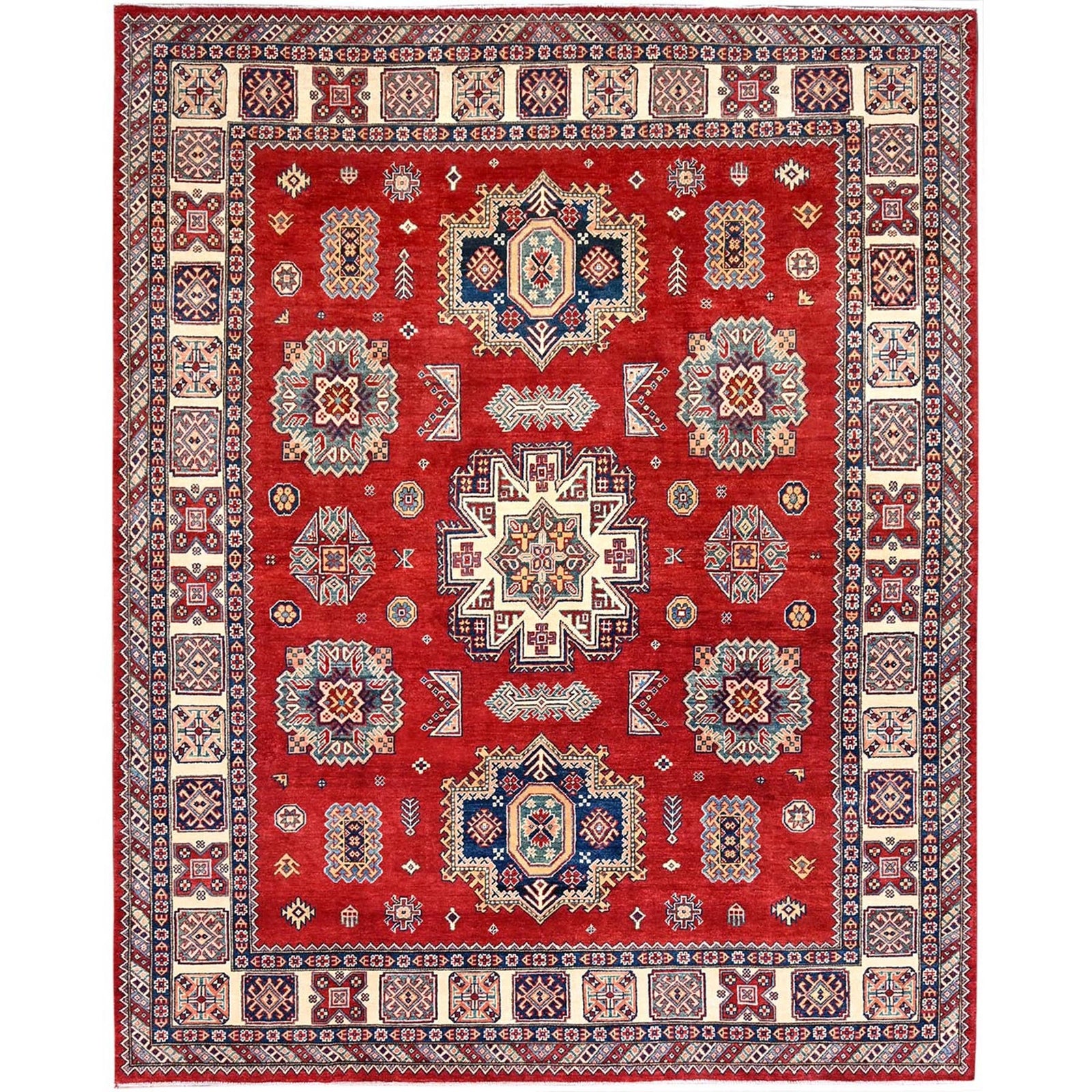 8'2"X10' Red Special Kazak Large Elements Hand Knotted Oriental Wool Rug