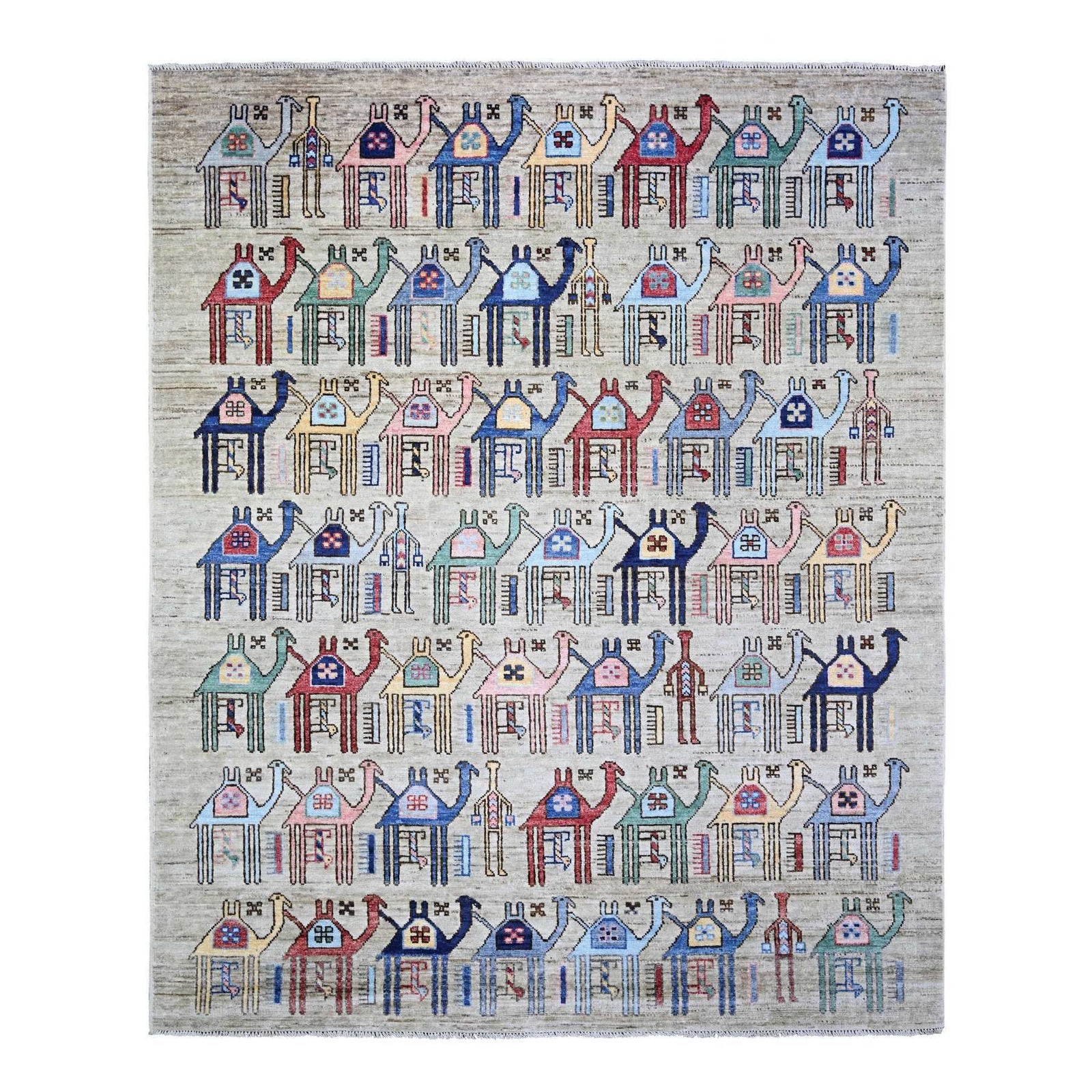 8'2"X9'9" Beige Anatolian Village Inspired Wool Hand Knotted Rug