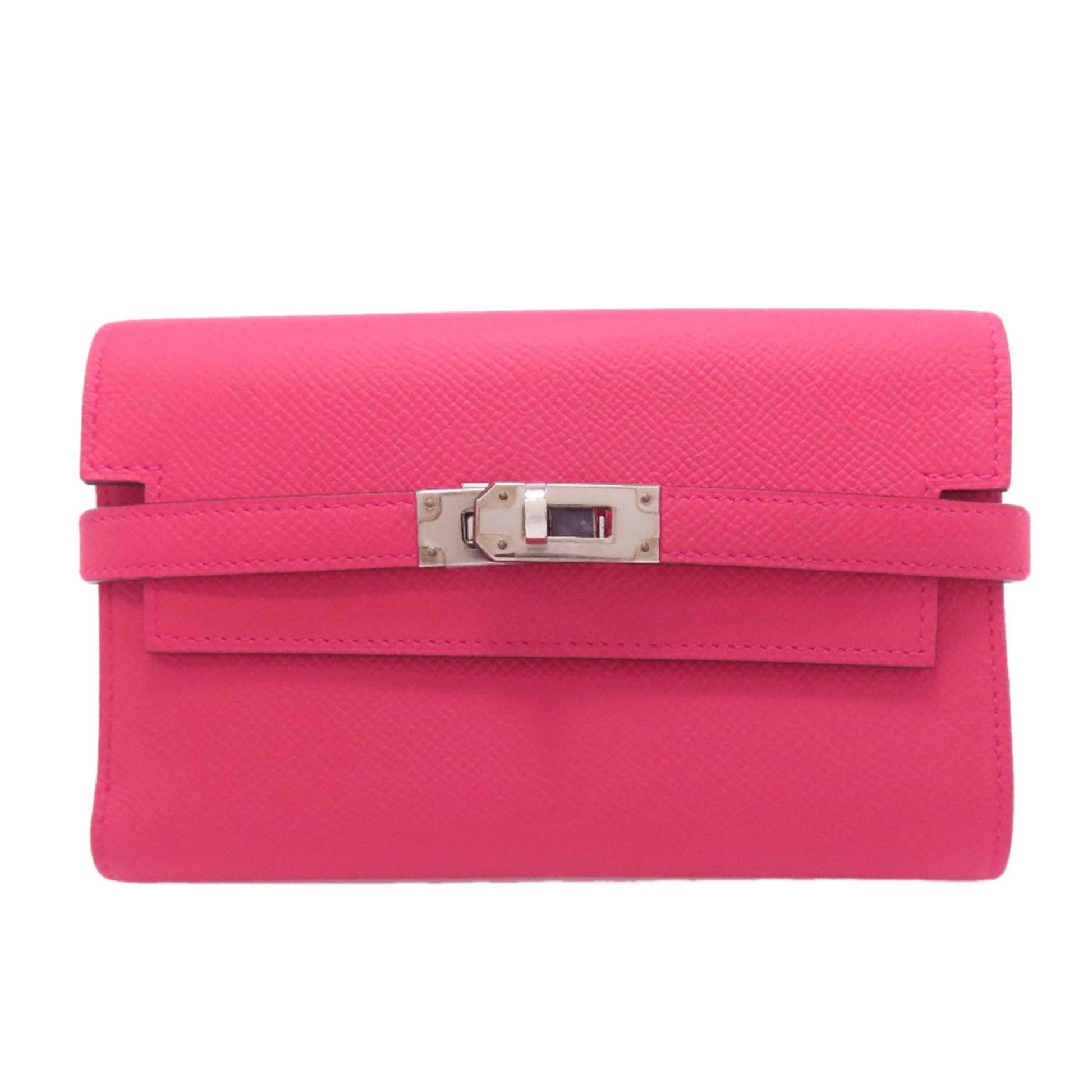 Hermes Herms Kelly Wallet Compact Rose Extreme Silver Hardware Bifold Epson