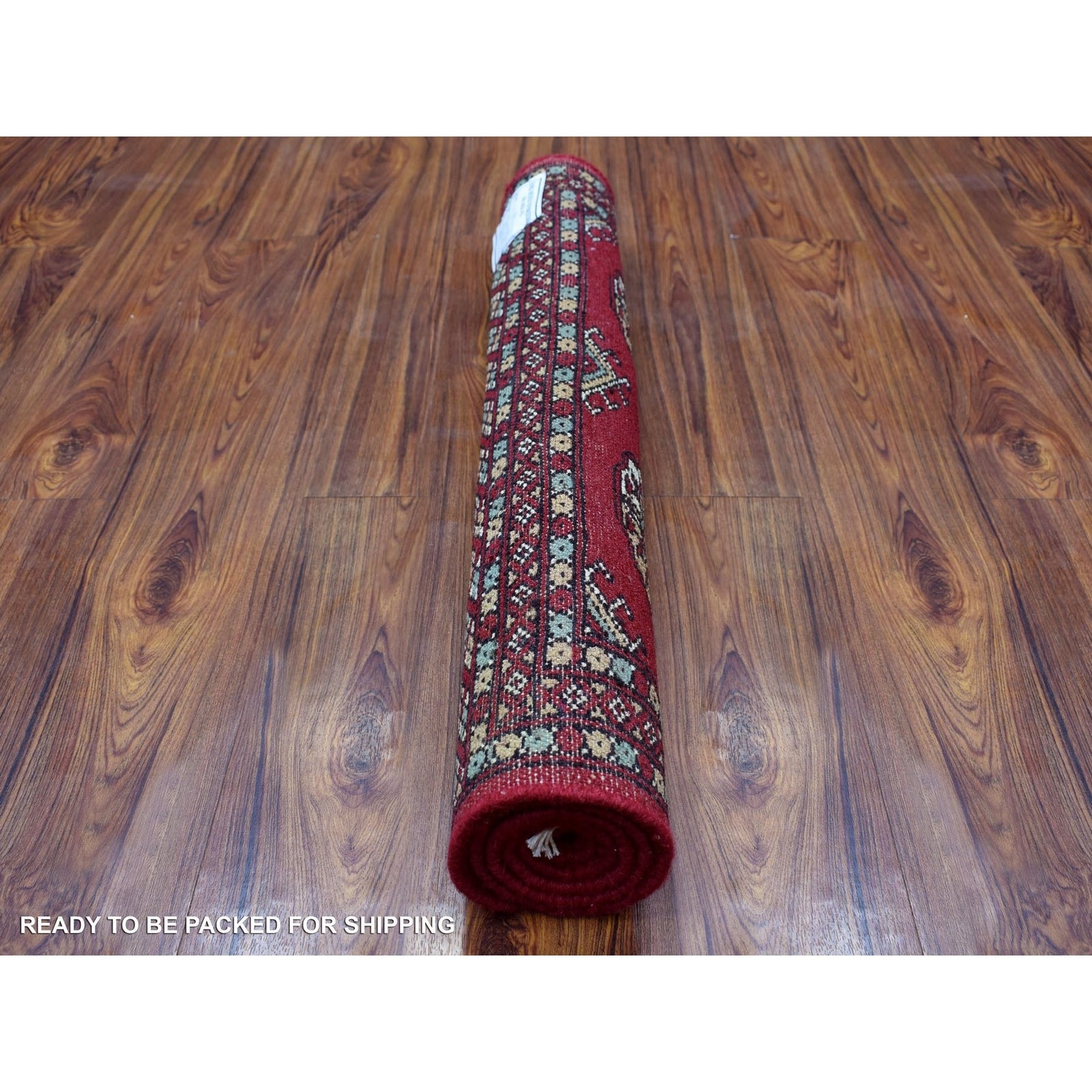 2'6"X3'10" Hand Knotted Rich Red Mori Bokara Silky Wool Oriental Rug