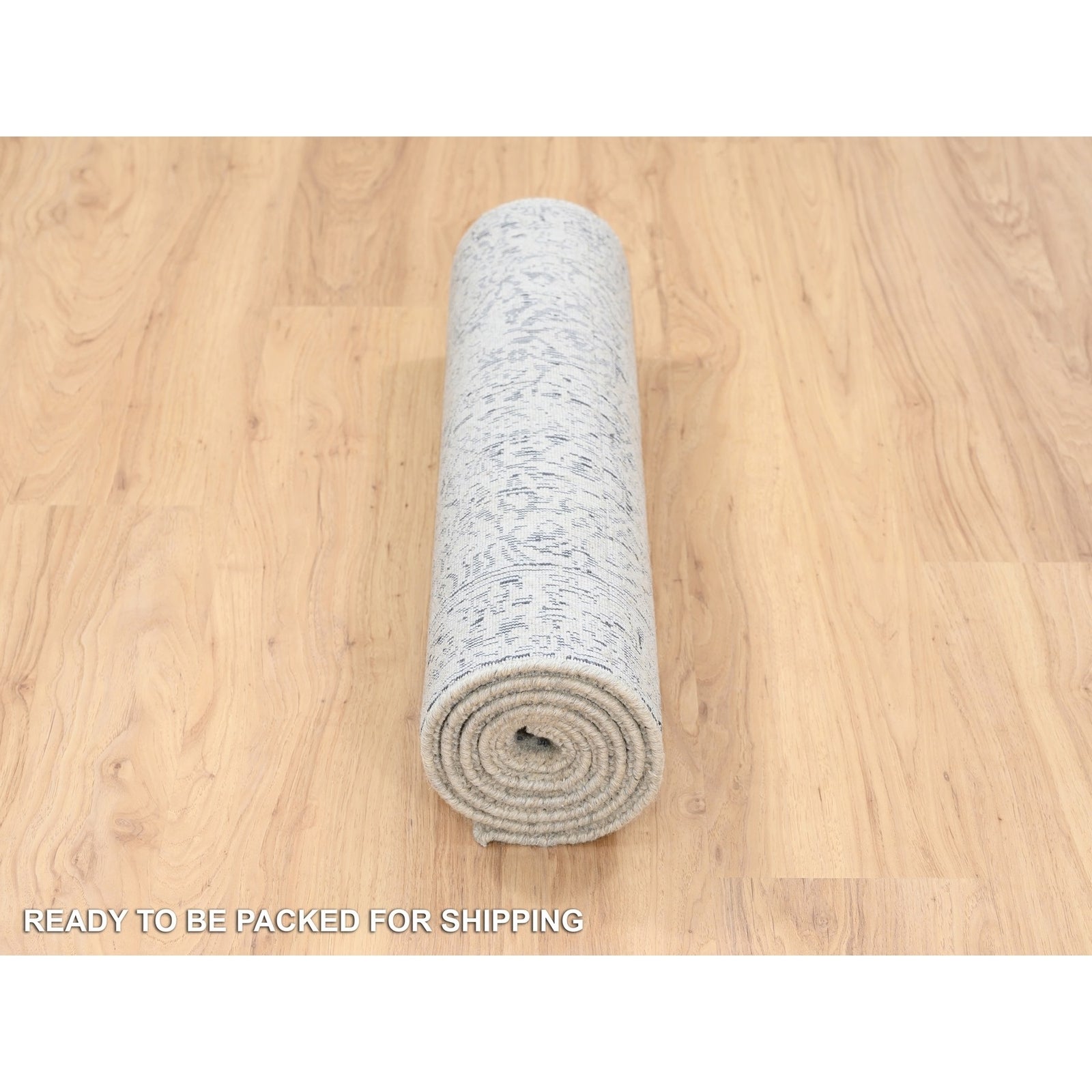 2'6"X6' Hand Loomed Light Gray Fine Jacquard Wool And Art Silk Runner Rug
