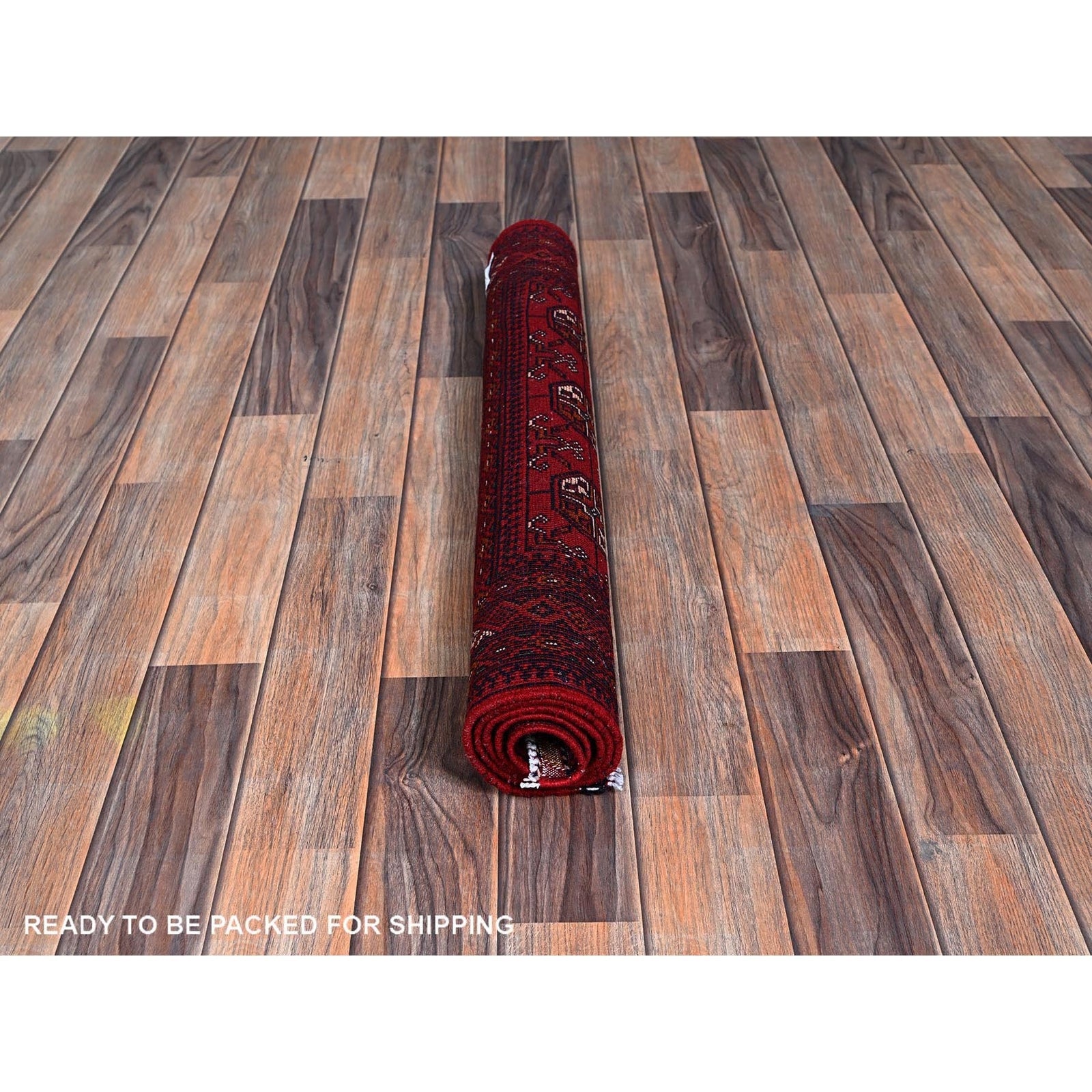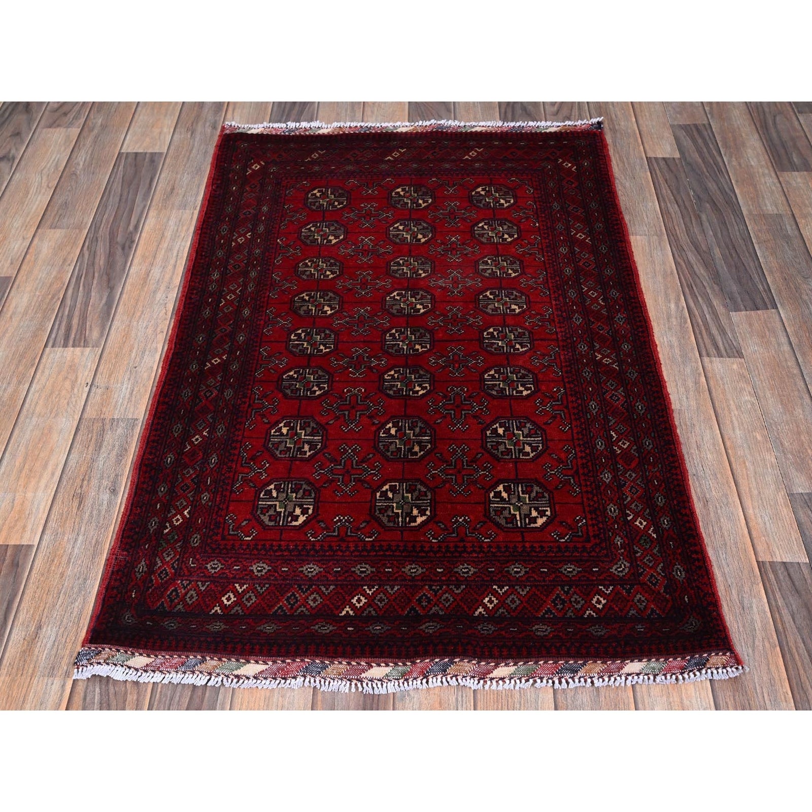 2'7"X4' Red Princess Bokara Geometric Pattern Hand Knotted Wool Sample Rug