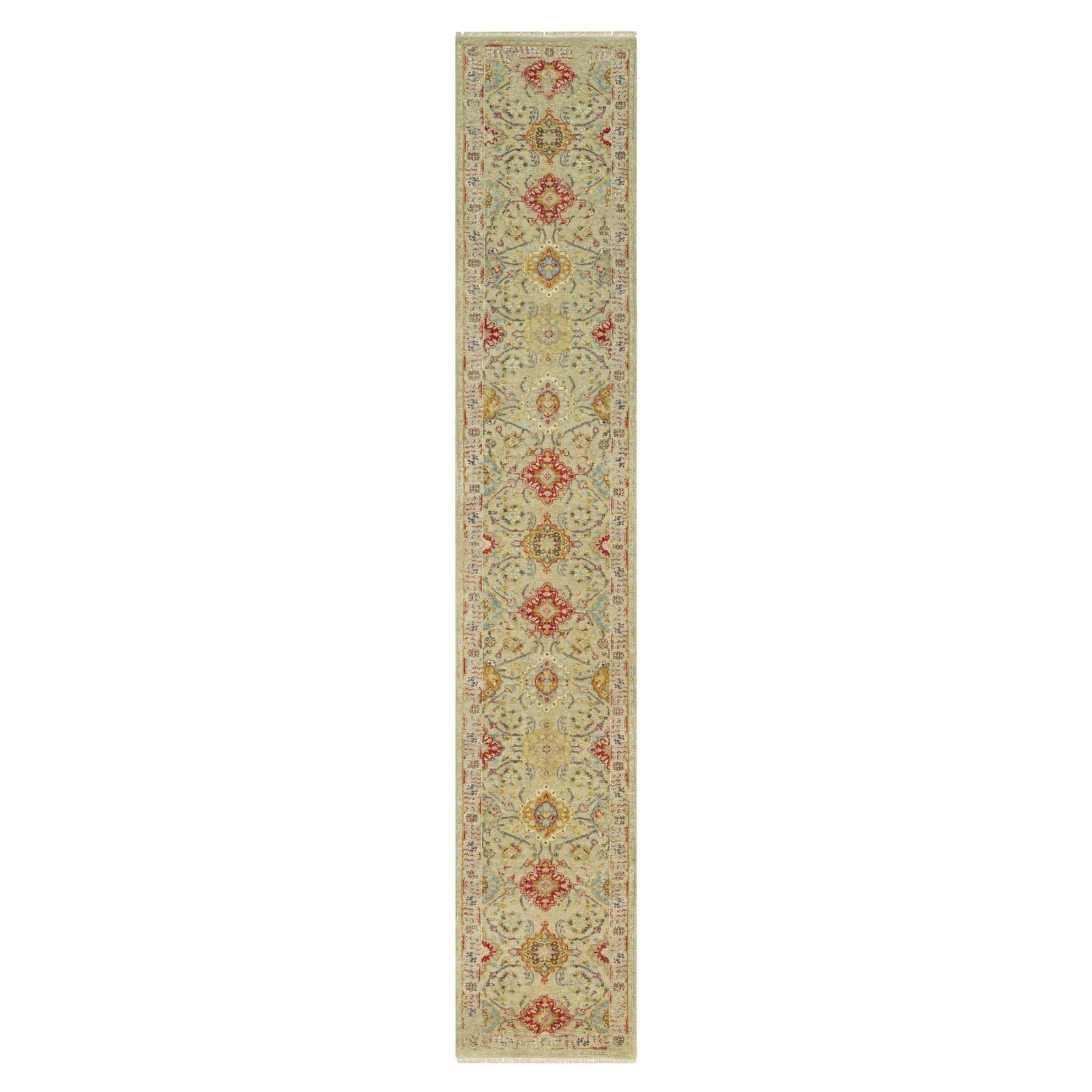 2'9"X15'10" Beige Wool And Silk Sunset Hand Knotted Runner Oriental Rug