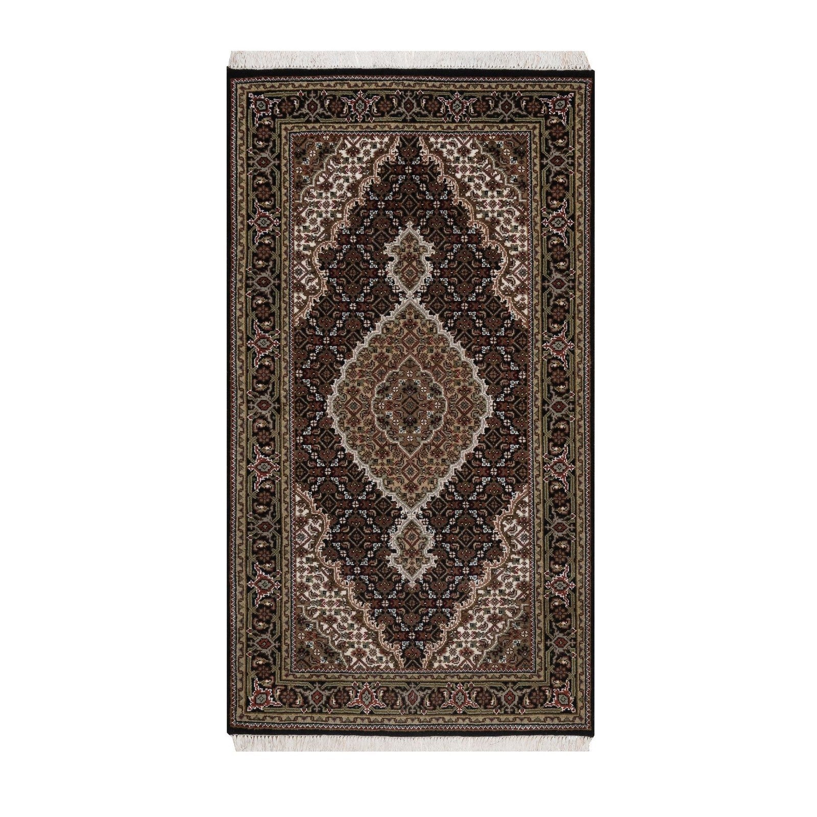 3'X5'4" Black Pure Wool Rug Tebraz Mahi With Medallion Design Hand Knotted