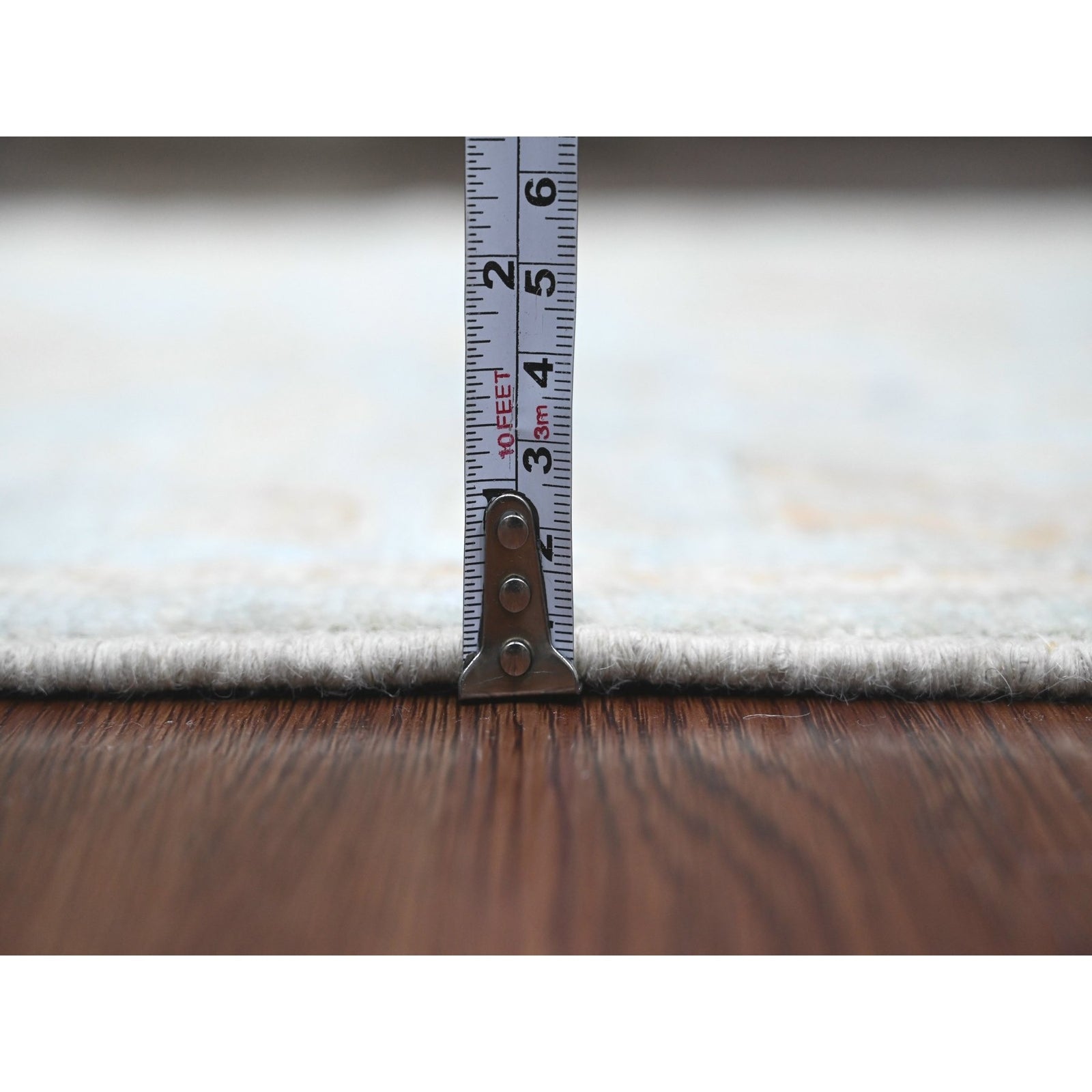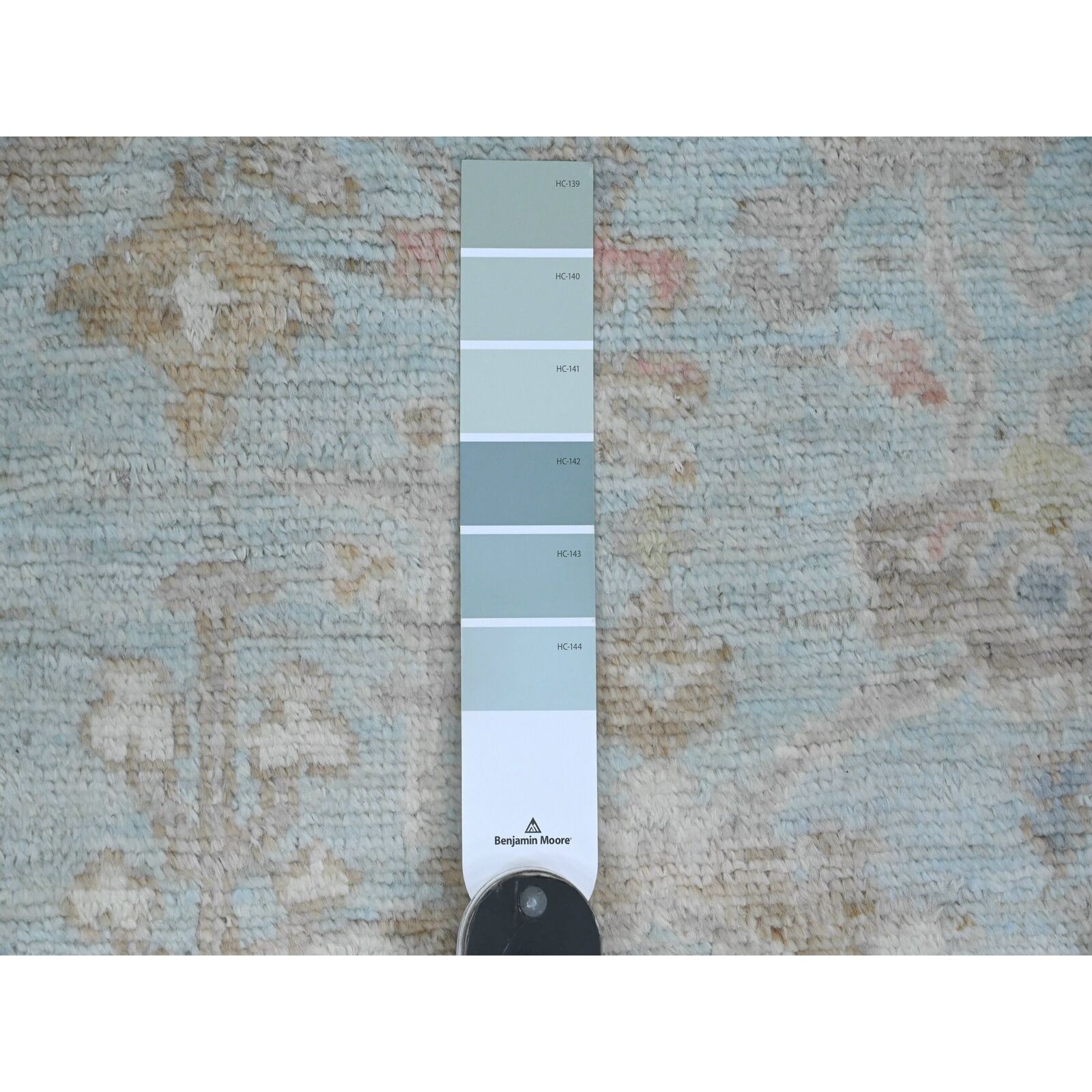 3'X9'6" Blue Hand Knotted Afghan Angora Oushak Leaf Motif Wool Runner Rug