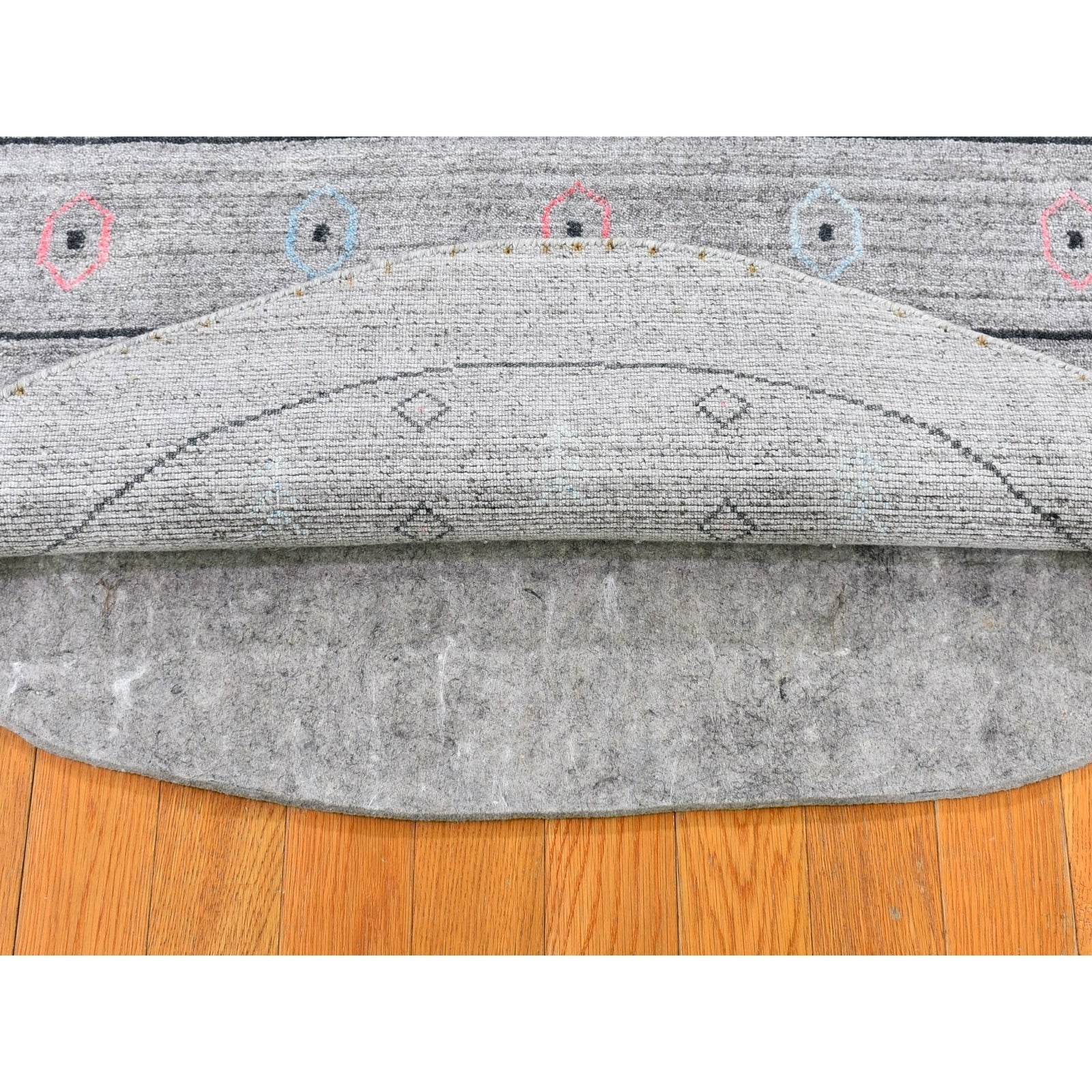 4'1"X4'1" Gray Wool And Silk Hand Loomed Gabbeh Round Oriental Rug