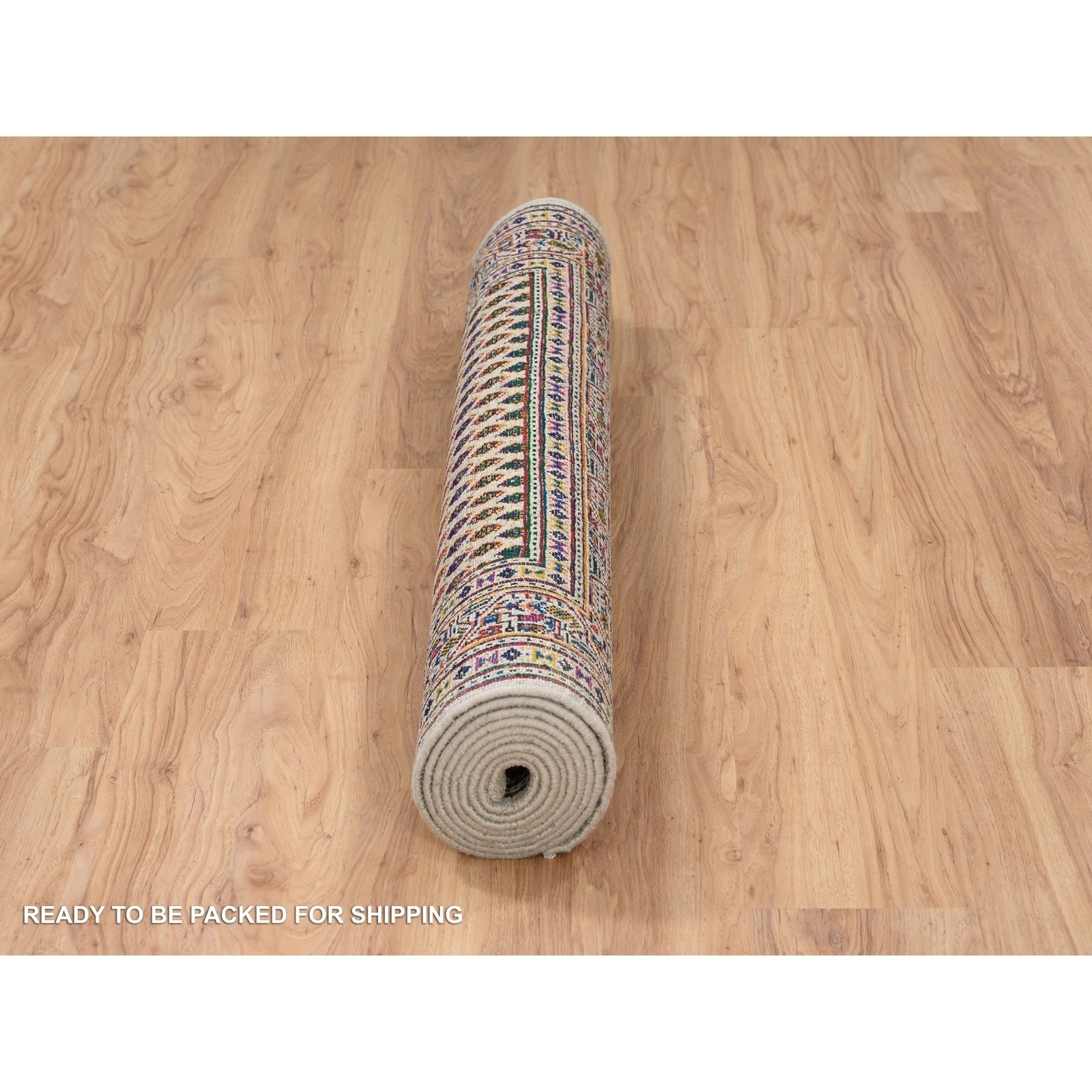 4'X10' Hand Knotted Beige Saroogh Wool And Sari Silk Wide Runner Rug