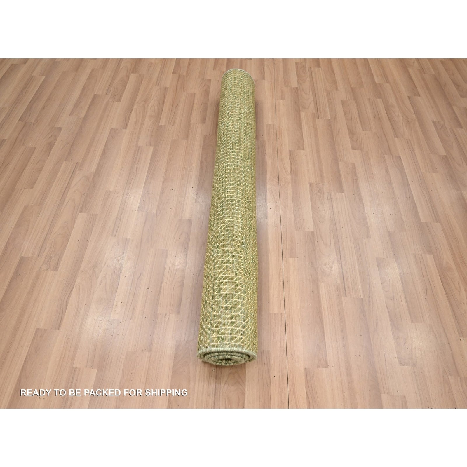 4'X6'1" Amber Green Wool And Silk Modern Grass Design Hand Knotted Rug
