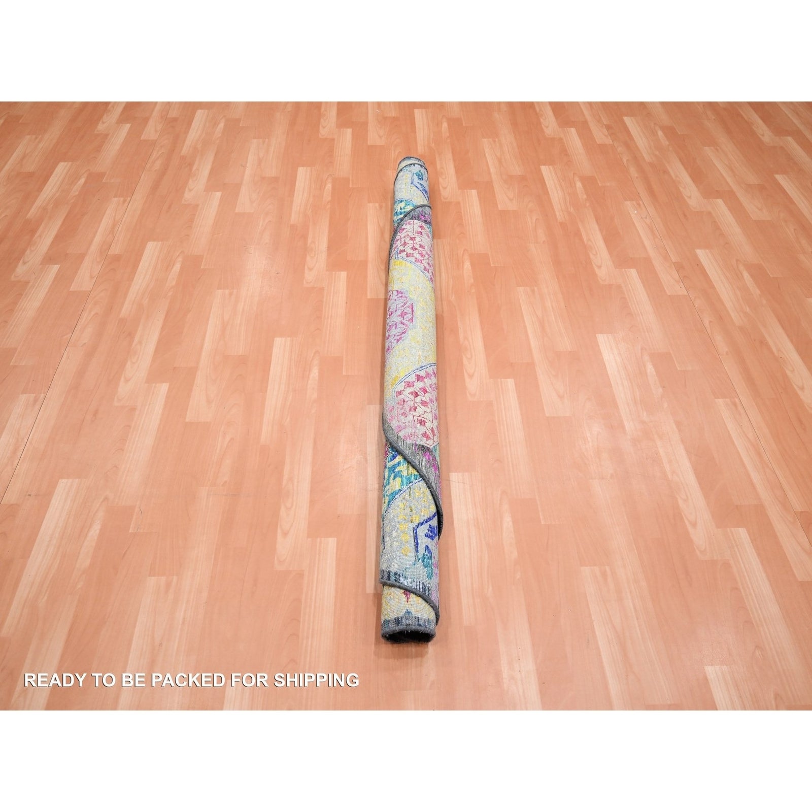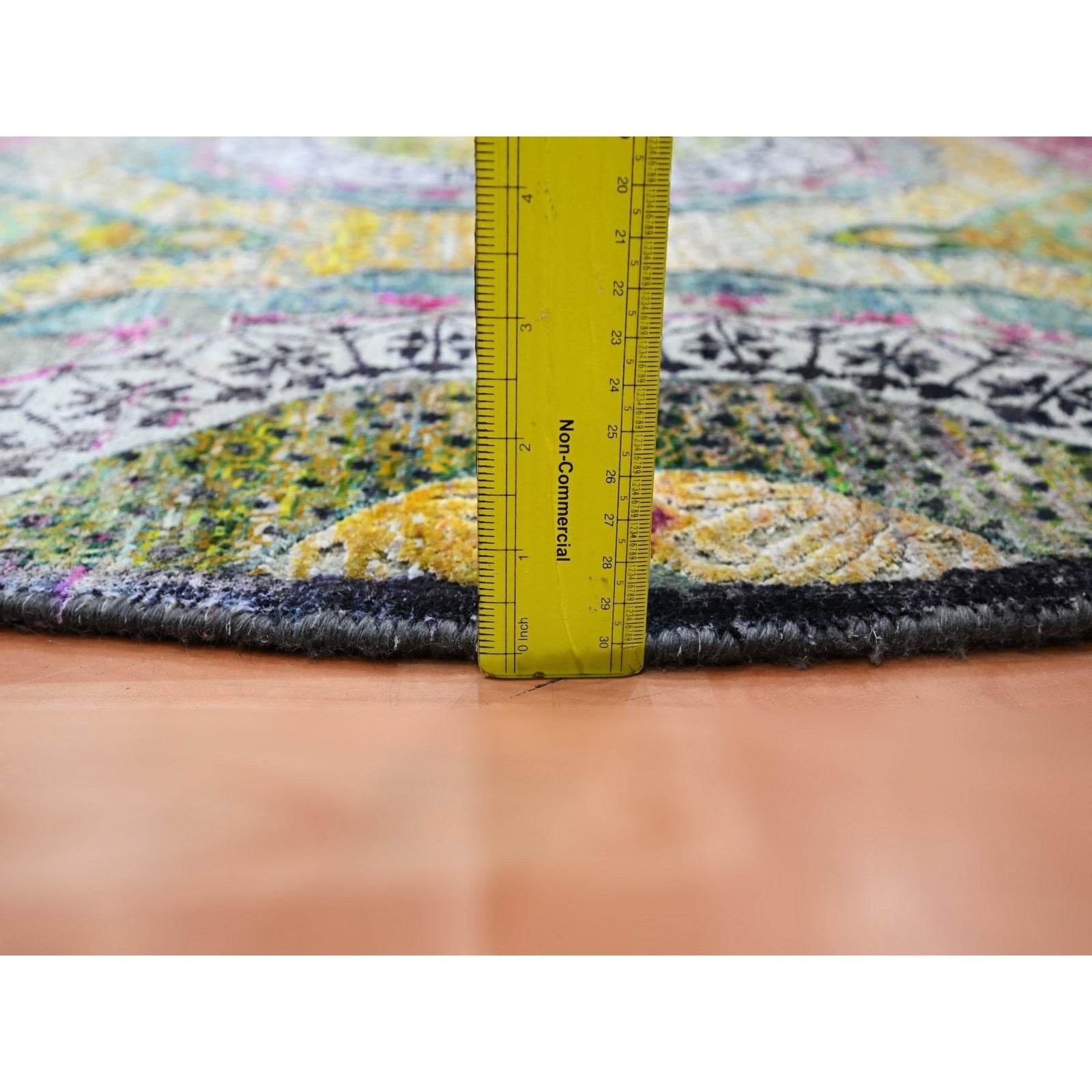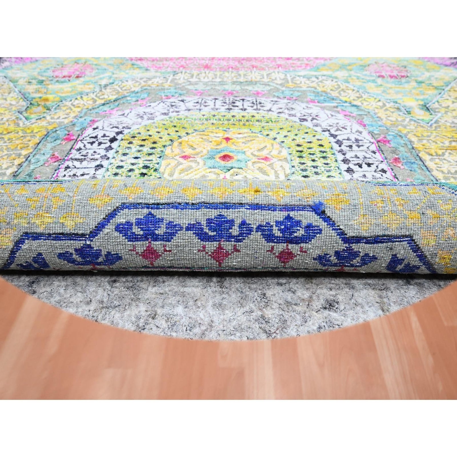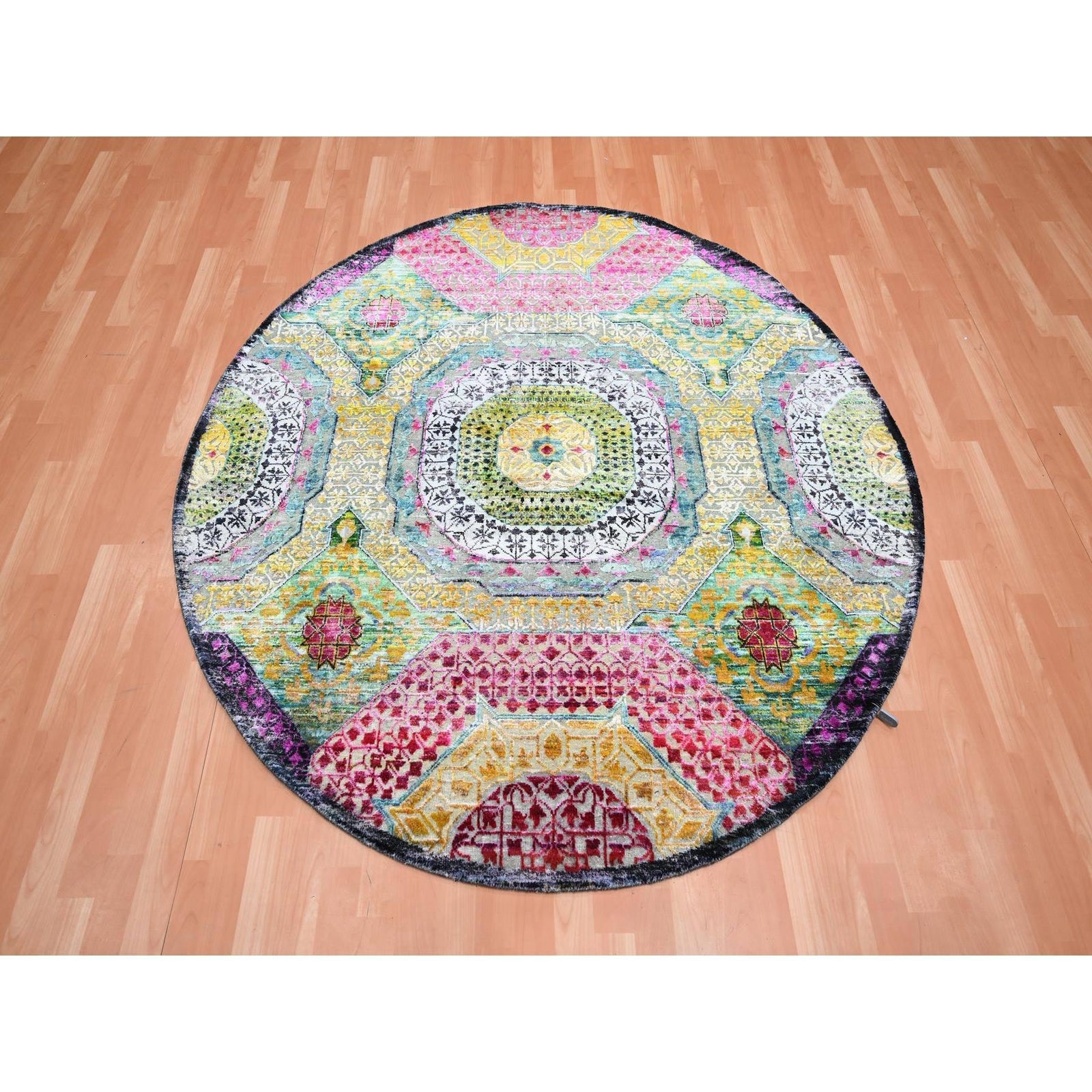 6'1"X6'1" Yellow Hand Knotted Mamluk Design Silk-Wool Round Oriental Rug
