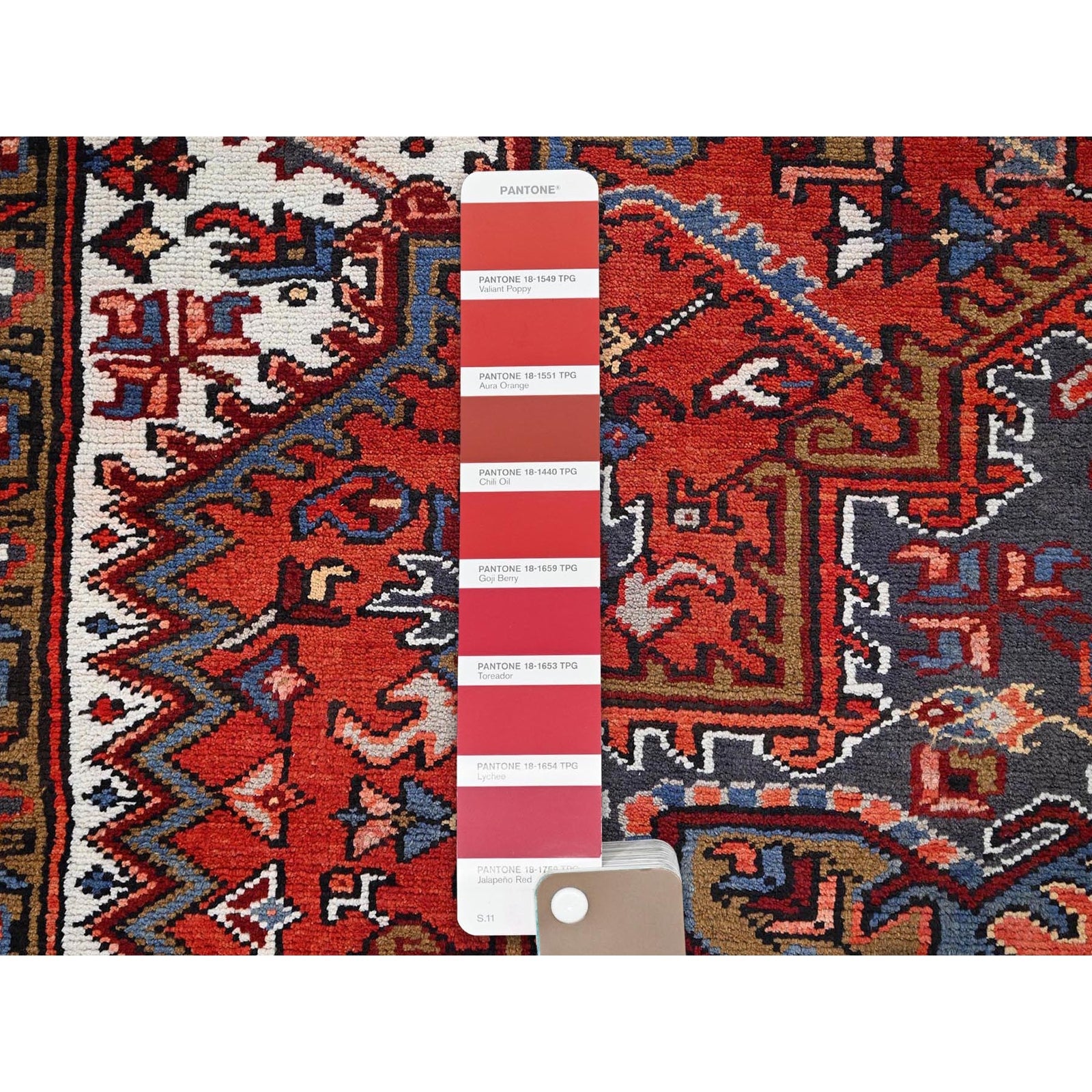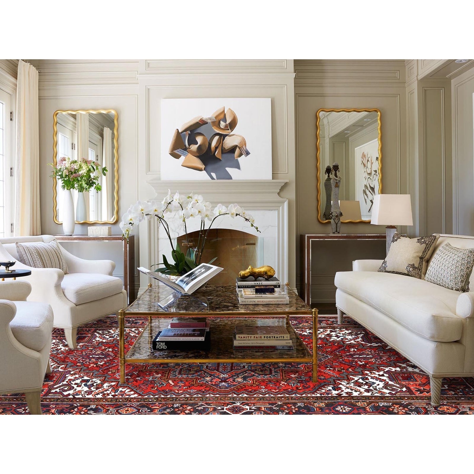 8'1"X11'1" Red Semi Antique Zoroastrian Heris Worn Wool Hand Knotted Rug