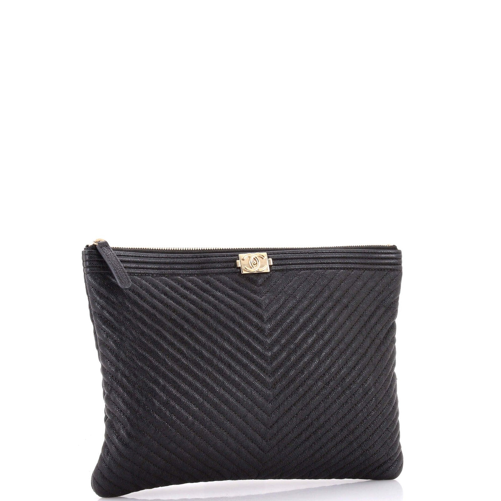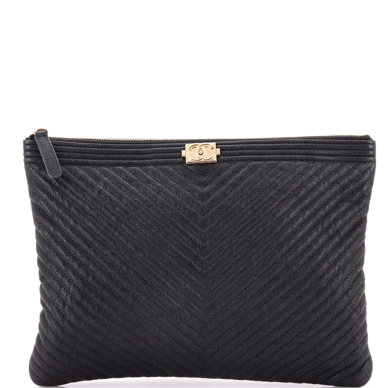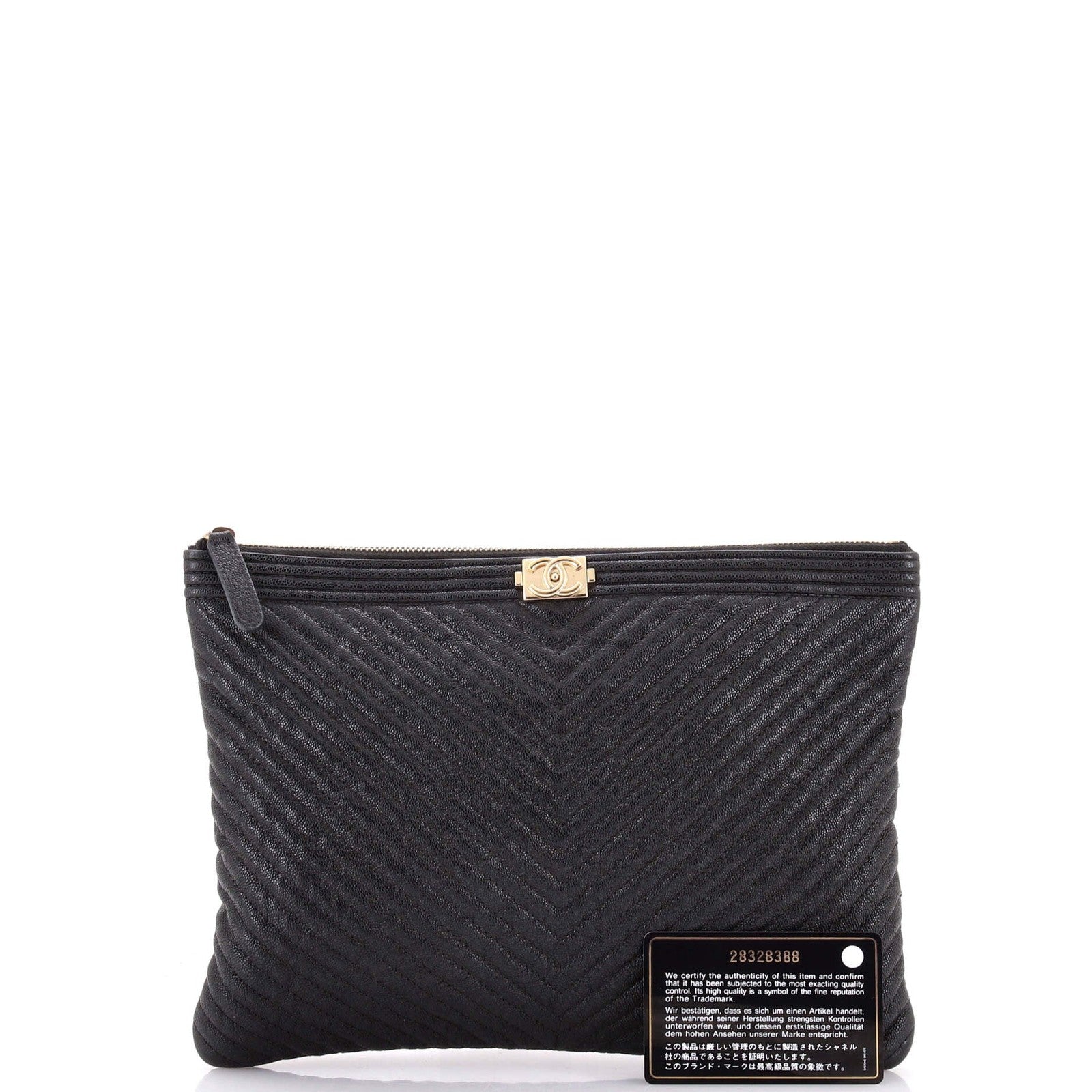 Chanel Boy O Case Clutch Chevron Caviar Medium