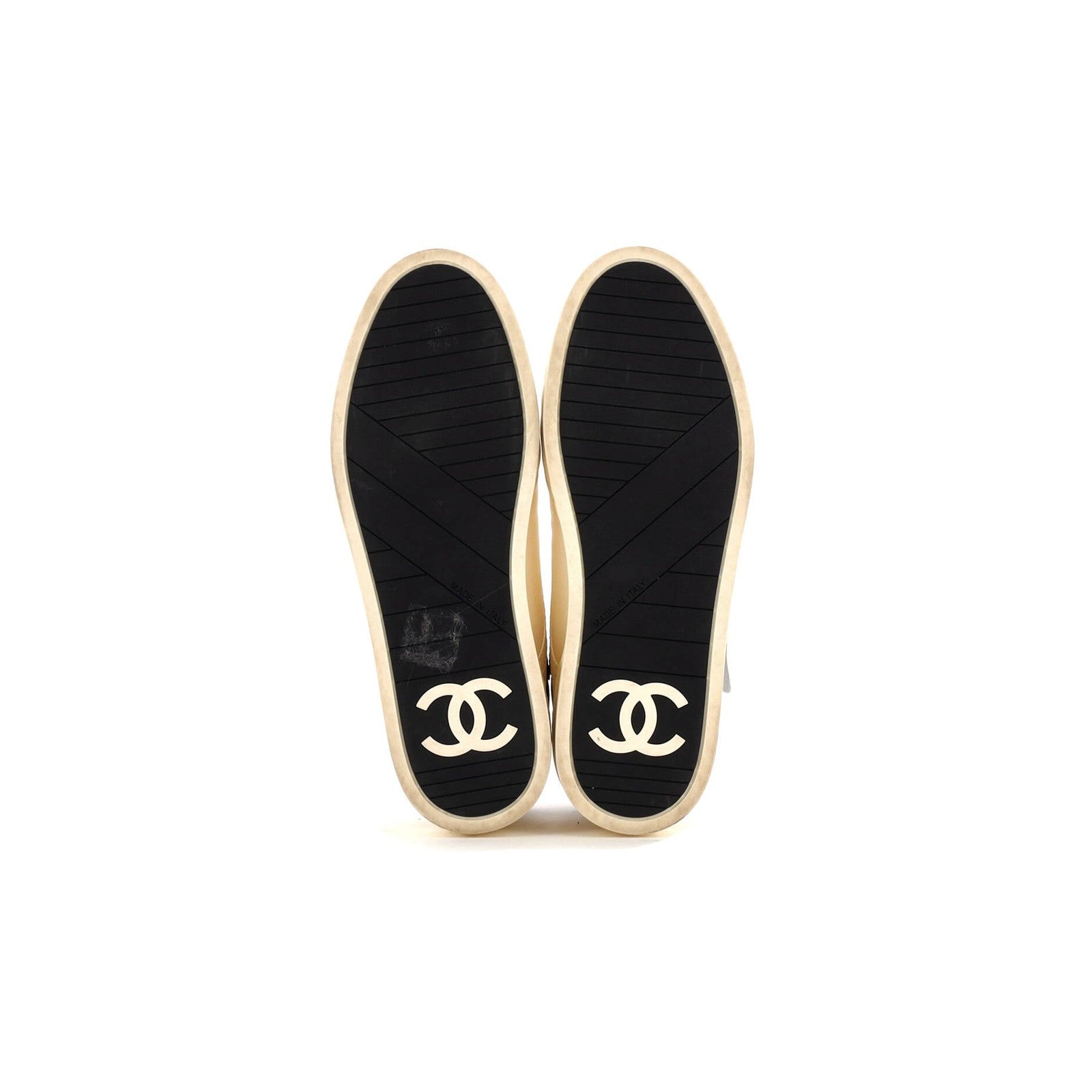 Chanel Women'S Logo Strap Lace Up Sneakers Leather