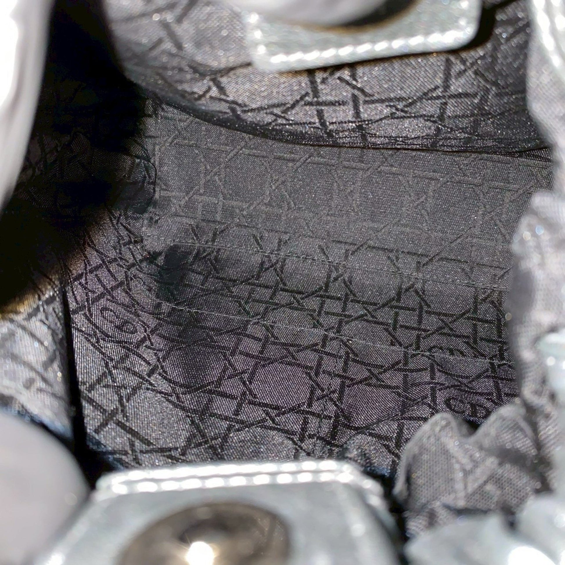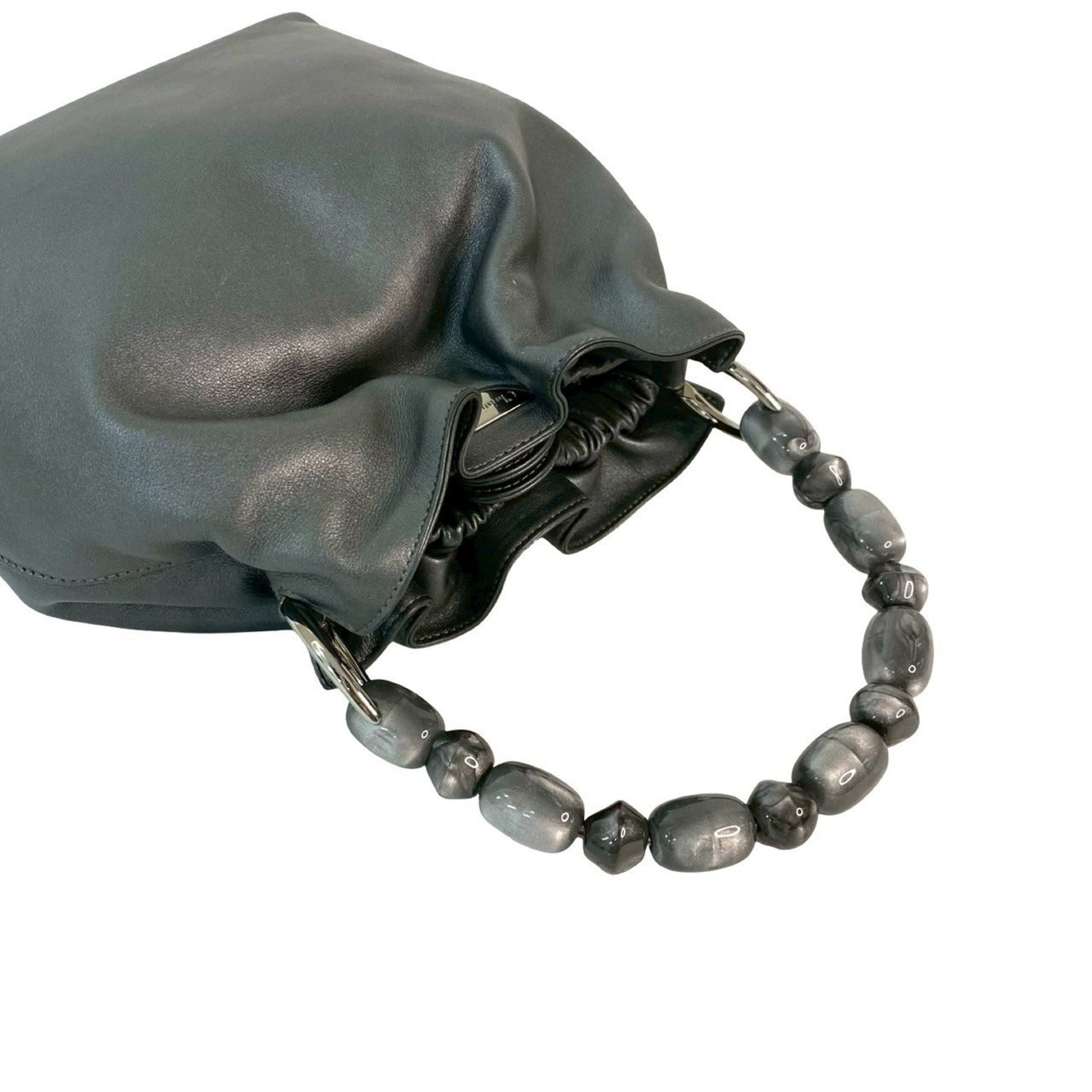 Christian Dior Maris Pearl Handle Leather Handbag Mini Tote Bag Gray 81480