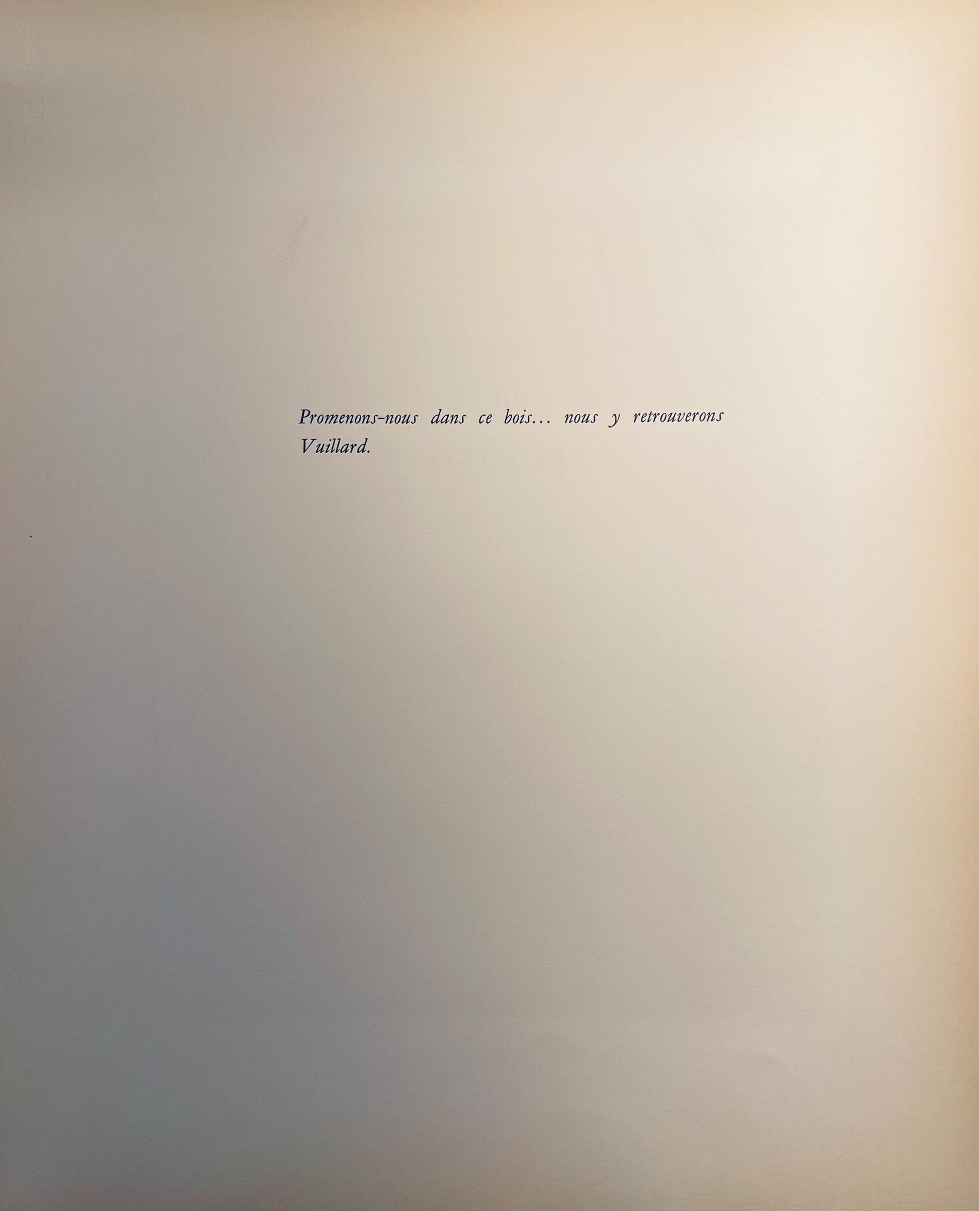 The print run was limited to CCCL examples; XXV numbered examples from I to XXV, enriched with an original drawing by vuillard; CCC numbered examples from XXVI to CCCXXV; XXV numbered non-commerce examples; DE H.