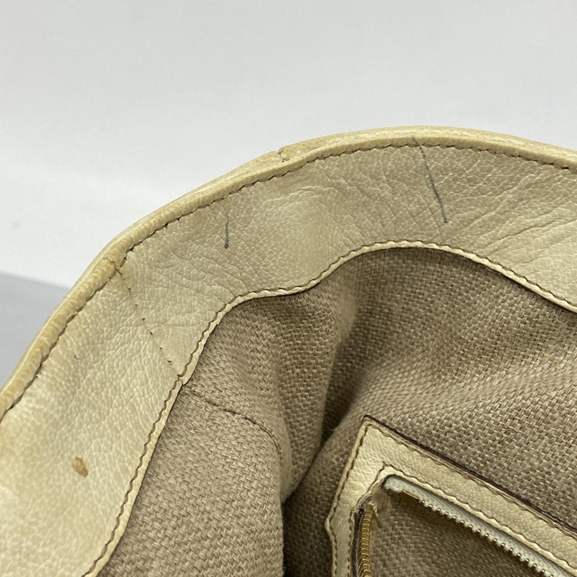 Gucci Bamboo Horsebit Handbag 154375 Leather Ivory Champagne