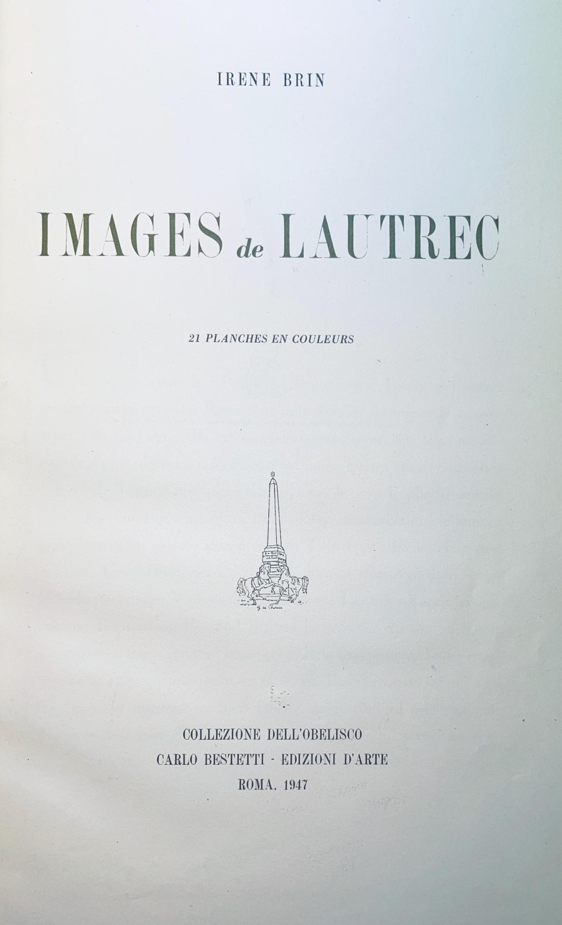 Original graphics by Henri de Toulouse Lautrec reproduced in this volume belong to the collections of the gentlemen, Gaspero del Corso and Giuseppe Sprovieri.