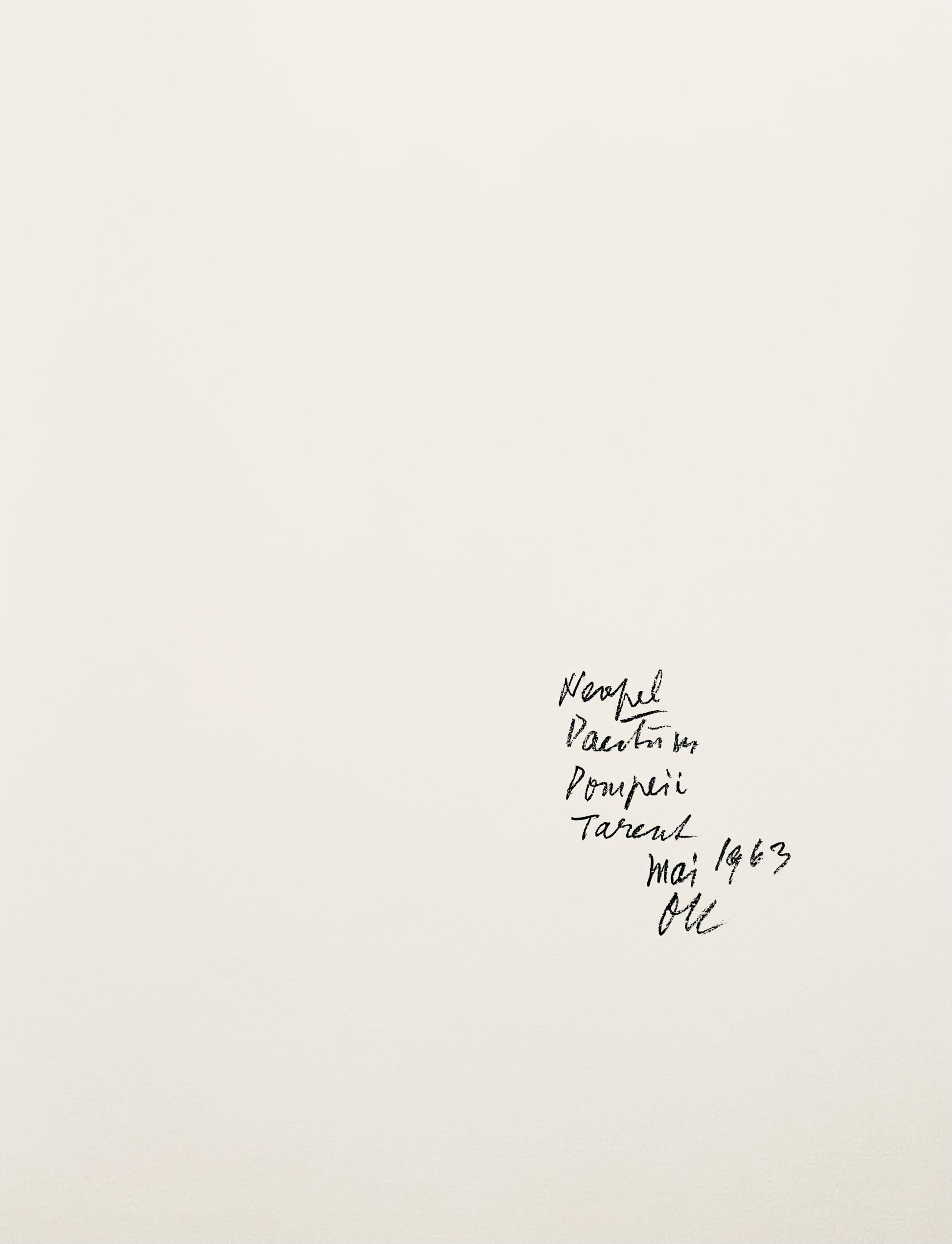 On the envelope cover at a later time from the memory of the artist designated and monogrammed: Naples; Paestum; Pompeii; Tarent, April - May 1963 (sic!).
