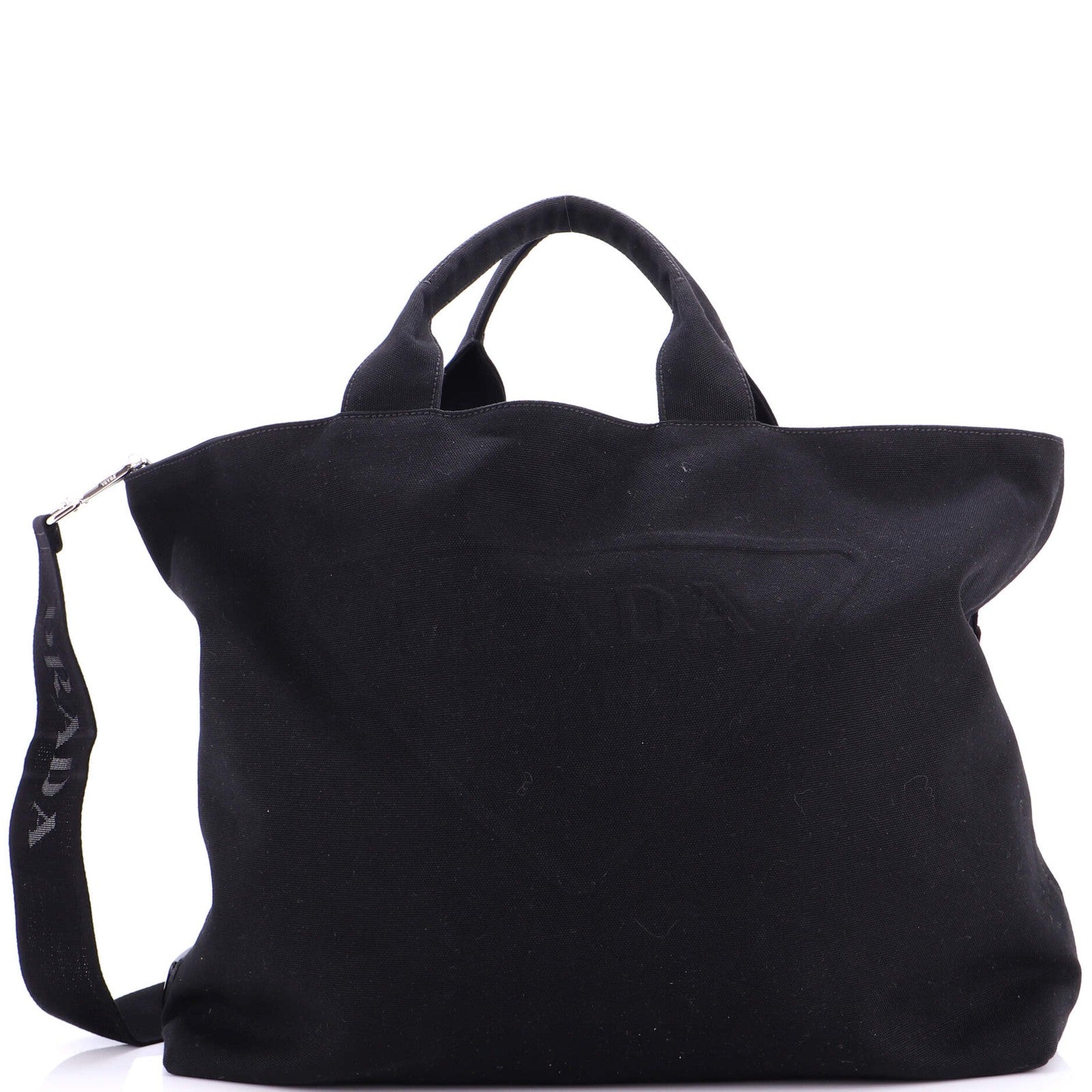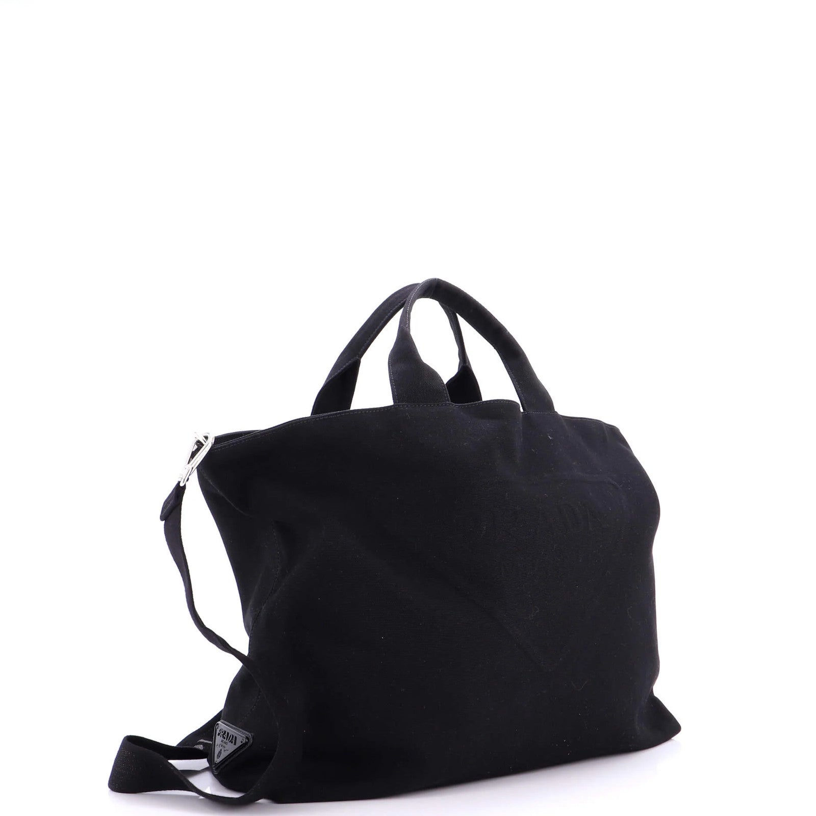 Prada Embossed Triangle Logo Convertible Tote Canvas Large