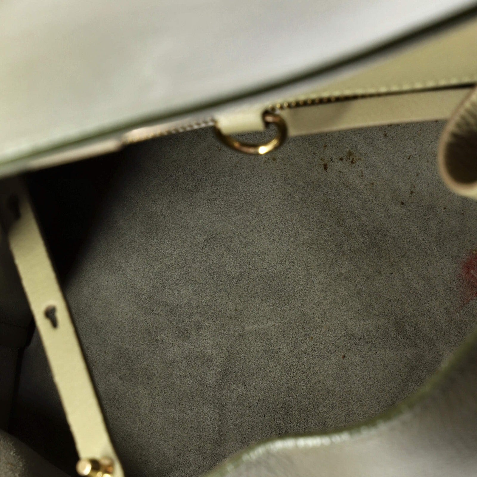 Condition: Fair. Exterior: heavy corner wear, scuffs, creases, loss of shape. Handles/Straps: heavy cracking, minor creases. Interior: splitting on opening wax edges , heavy stains, heavy discoloration. Hardware: minor scratches