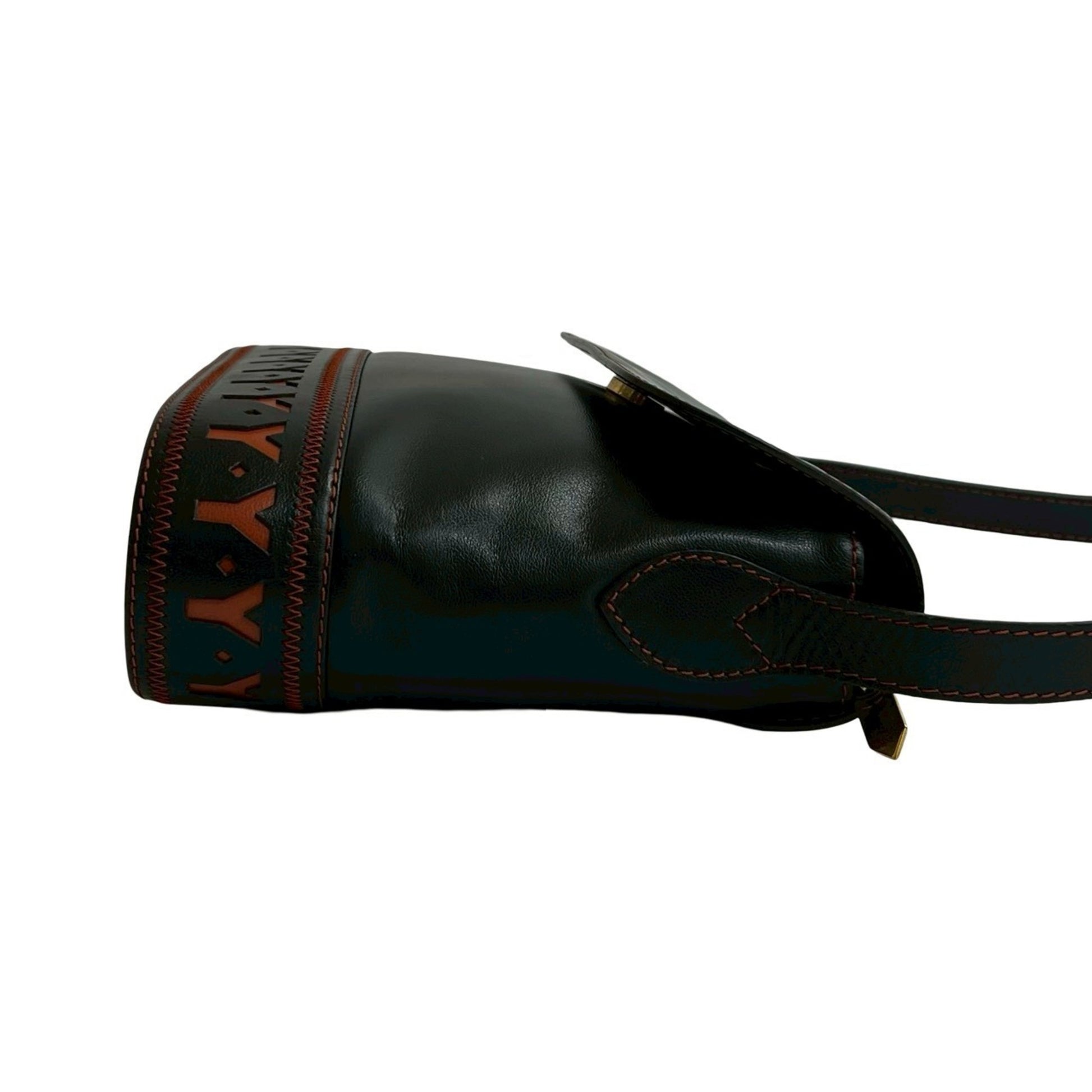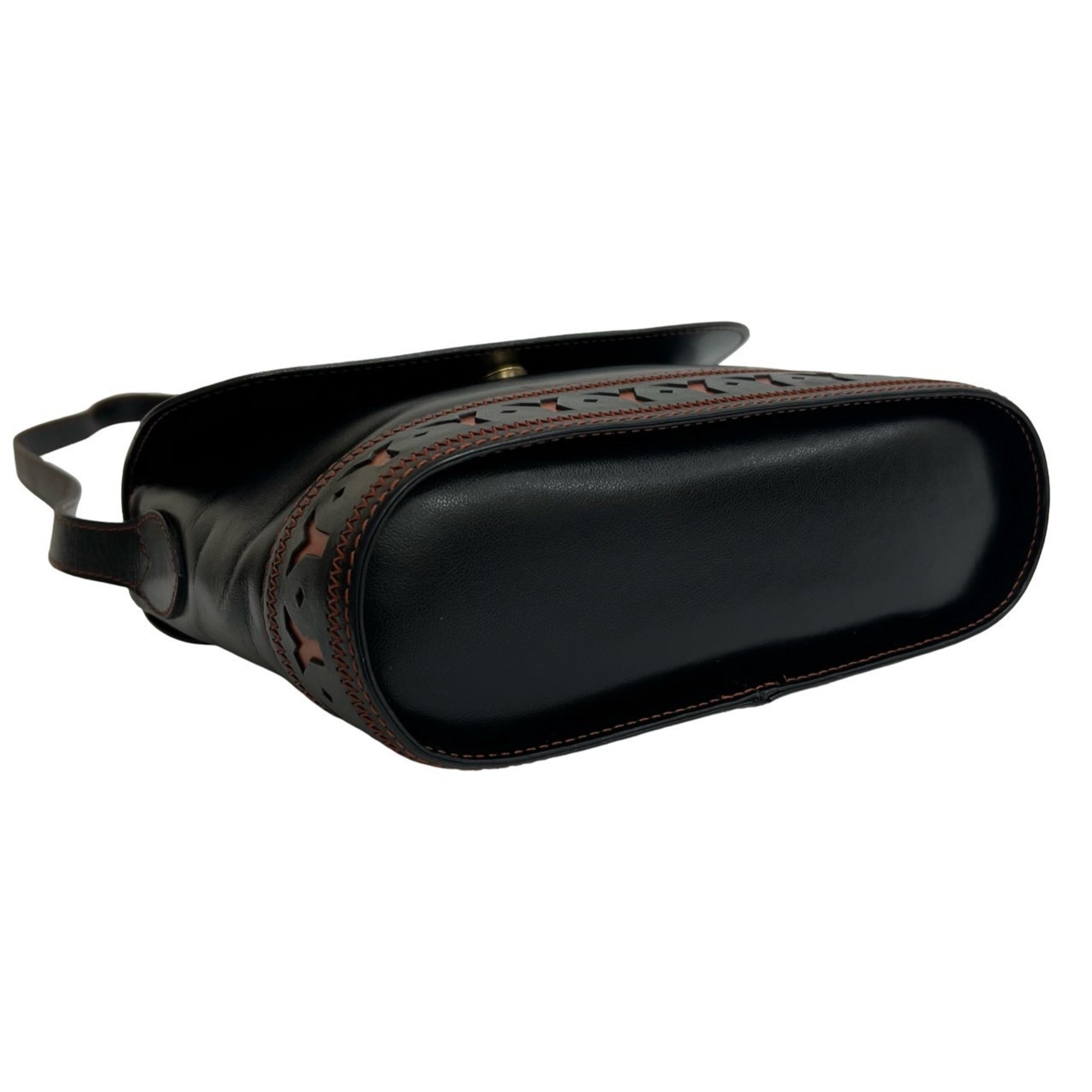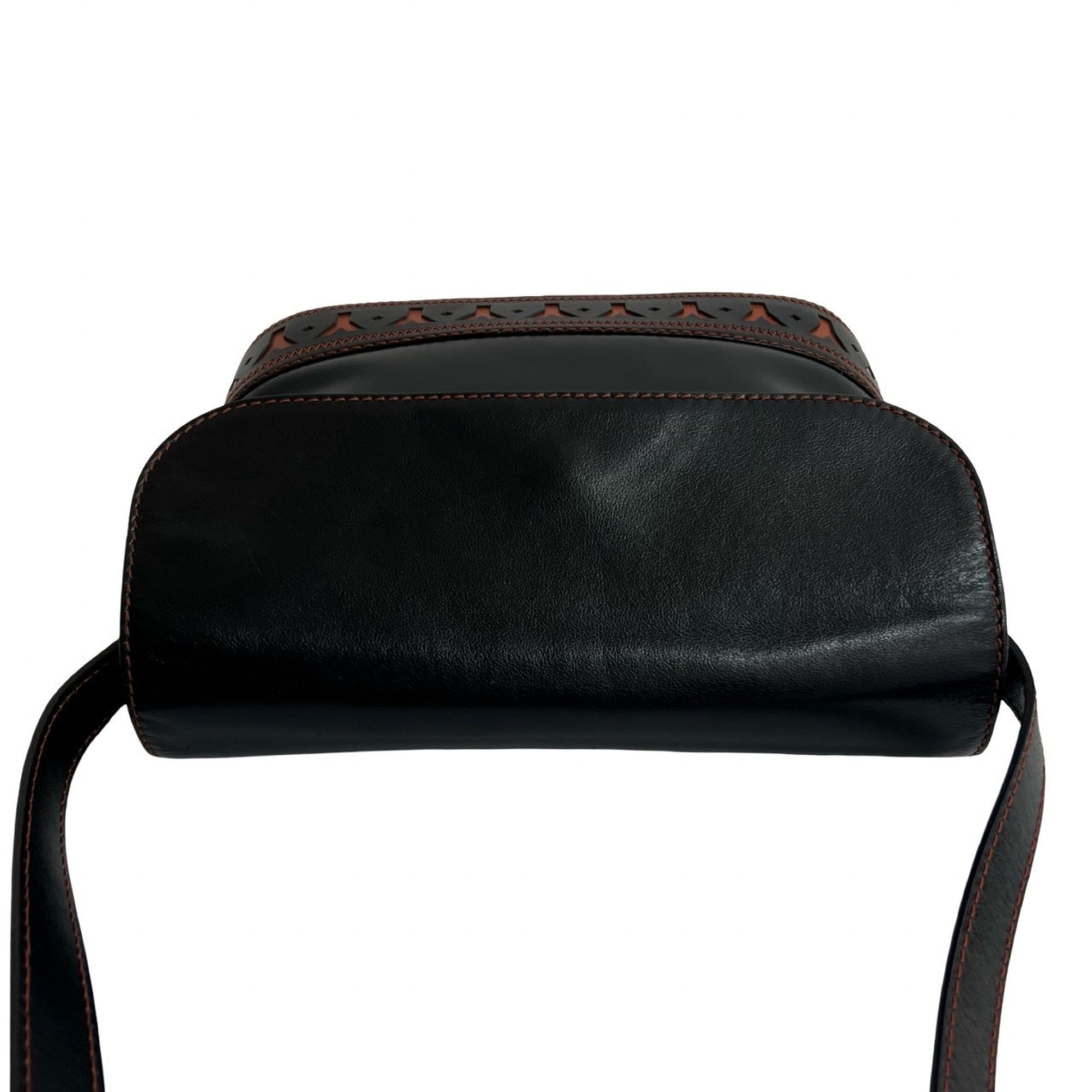 Yves Saint Laurent Perforated Cutout Leather Shoulder Bag Black/Brown 33294