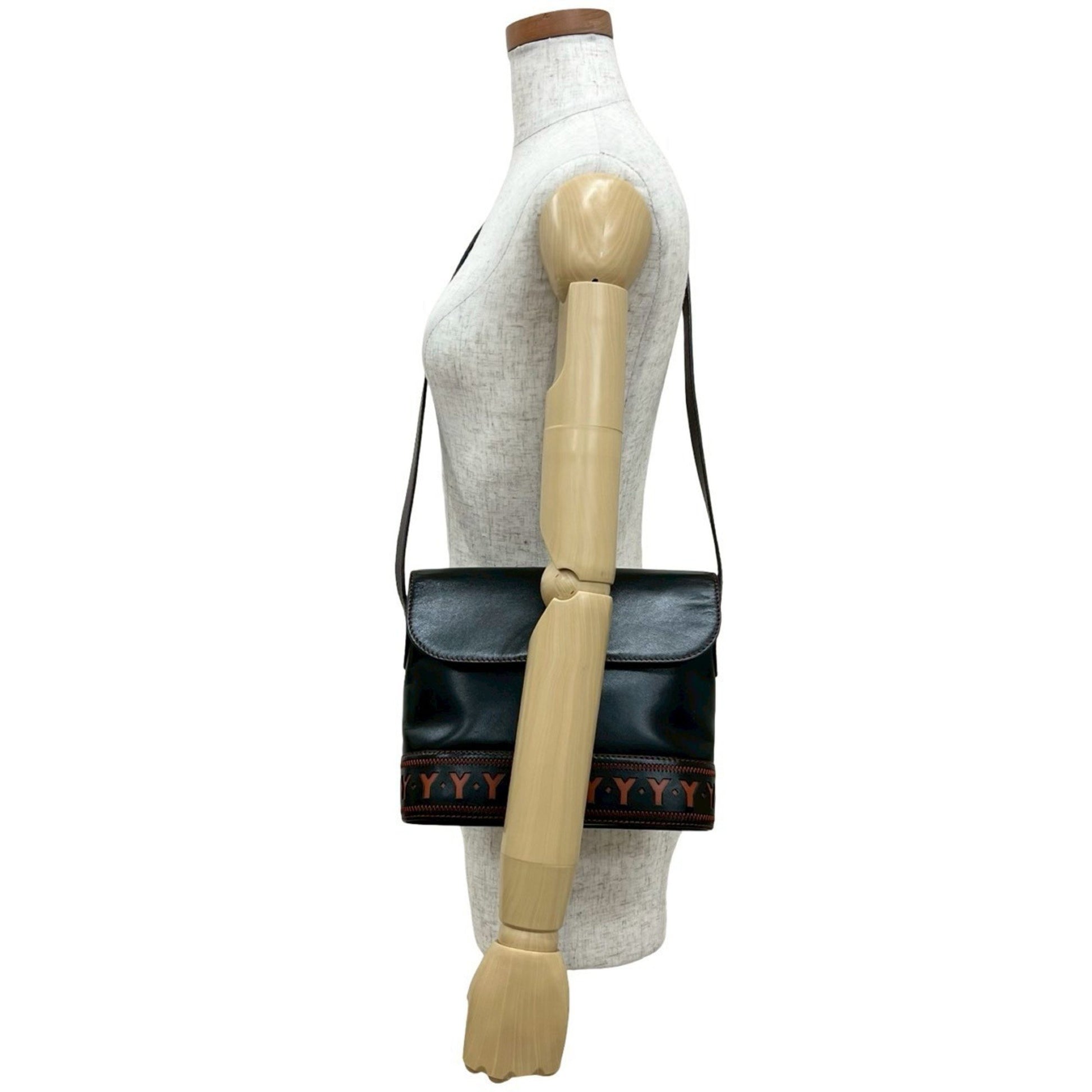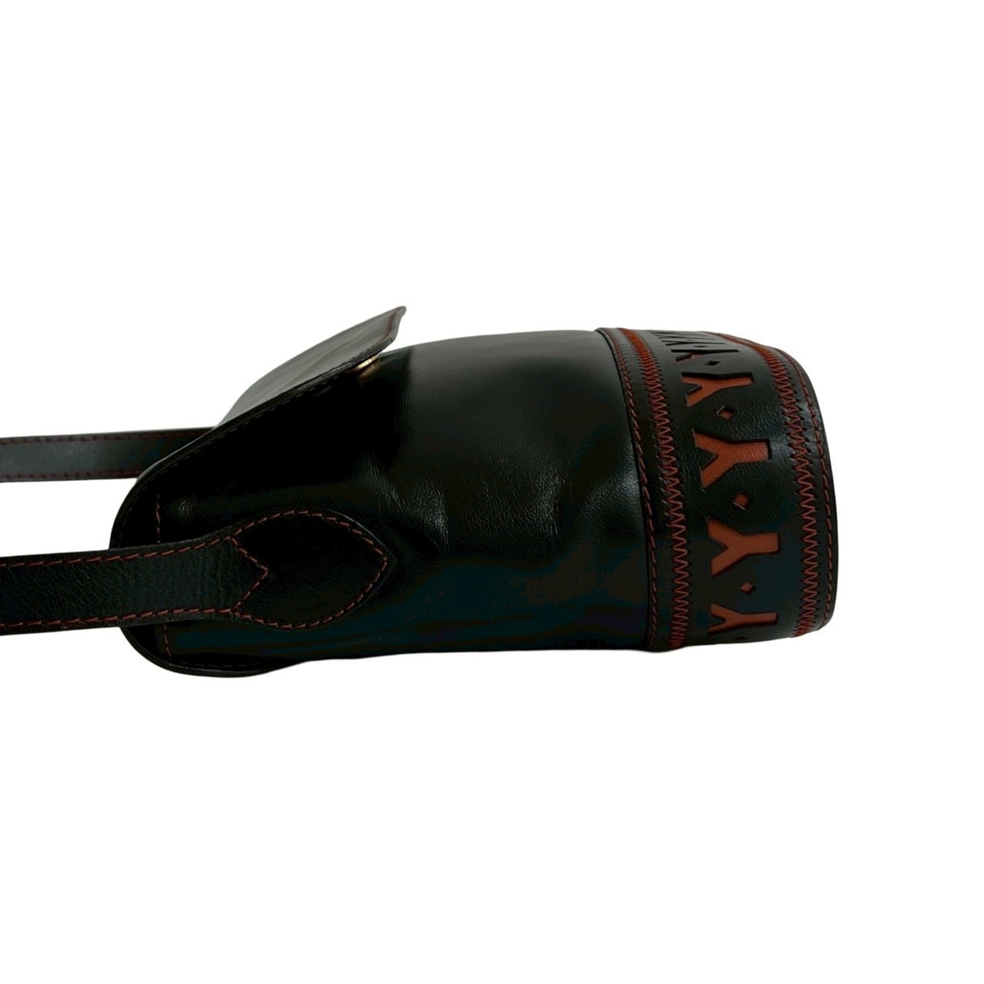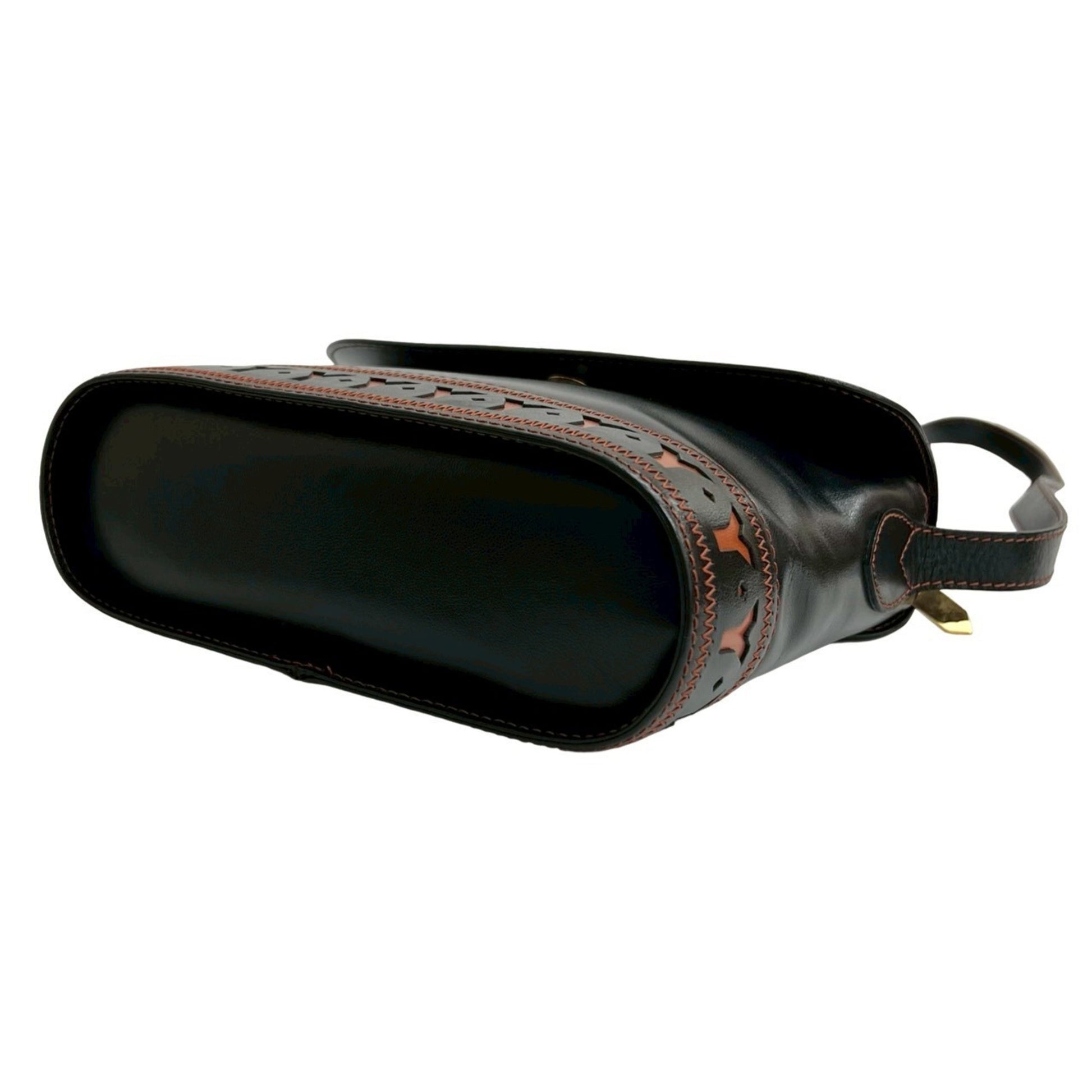 Yves Saint Laurent Perforated Cutout Leather Shoulder Bag Black/Brown 33294