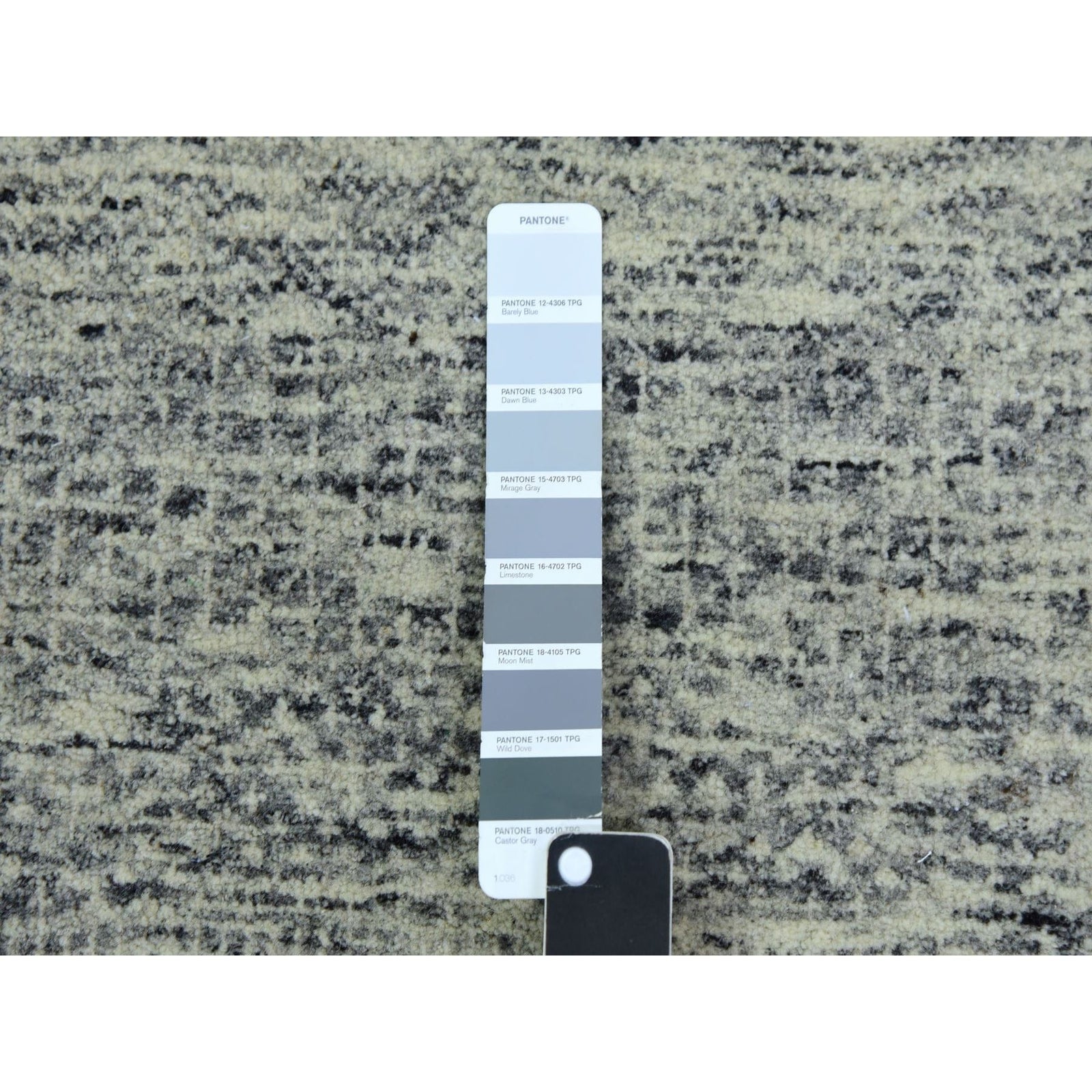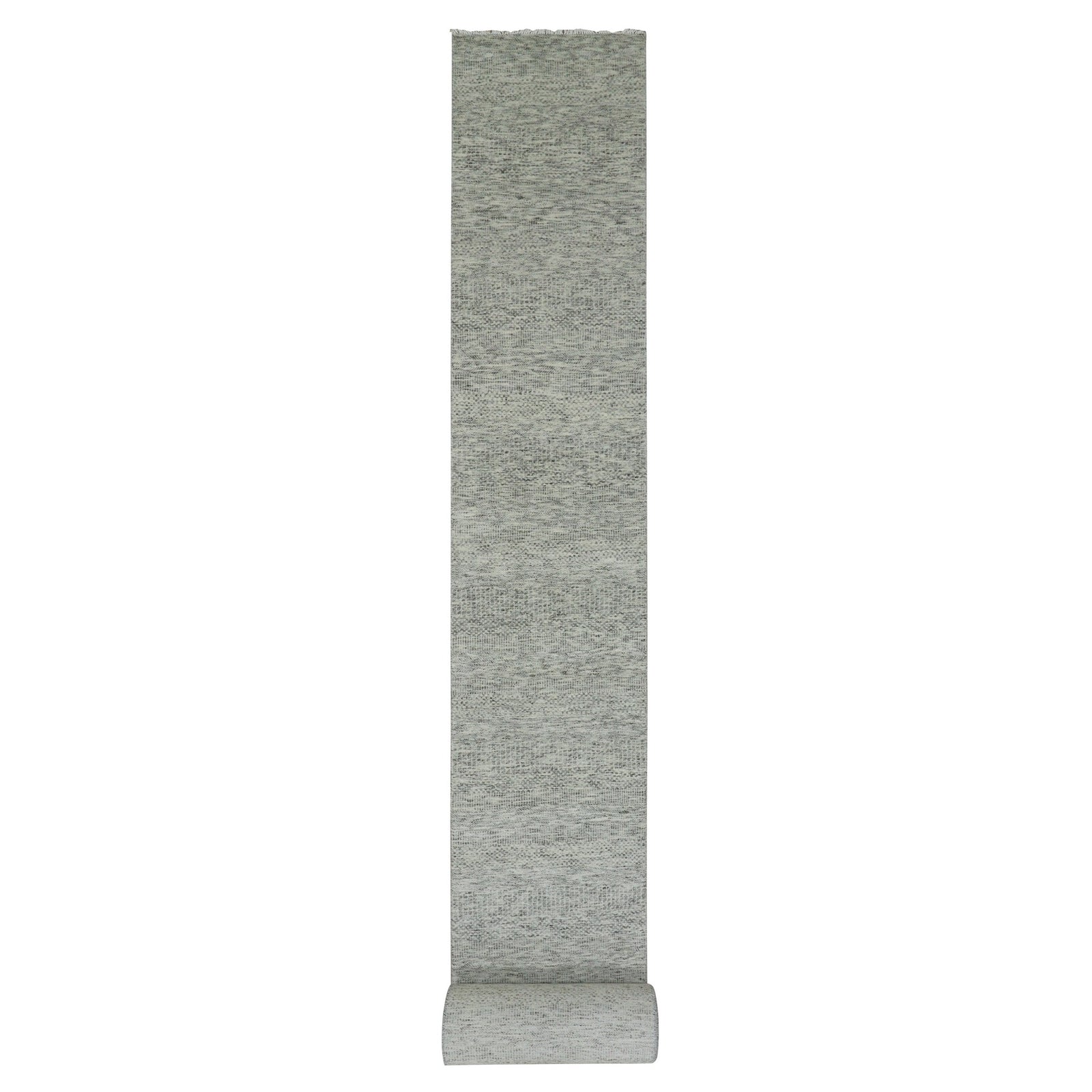 2'5"X29'7" Gray Undyed Wool Grass Design Hand Knotted Xl Runner Rug