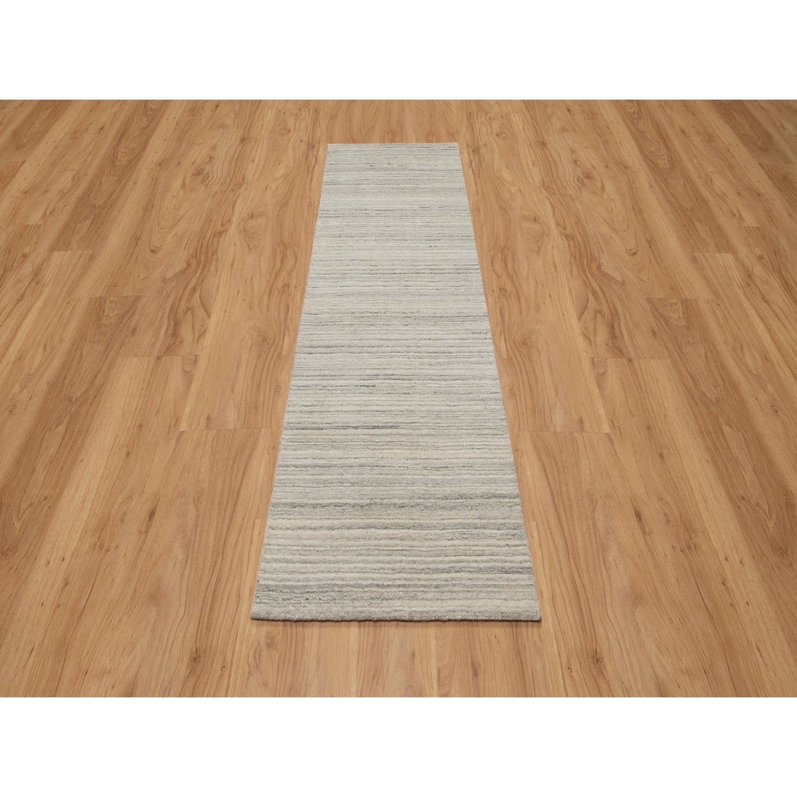 2'5"X8' Beige Plain Modern Design Undyed Pure Wool Hand Loomed Runner Rug