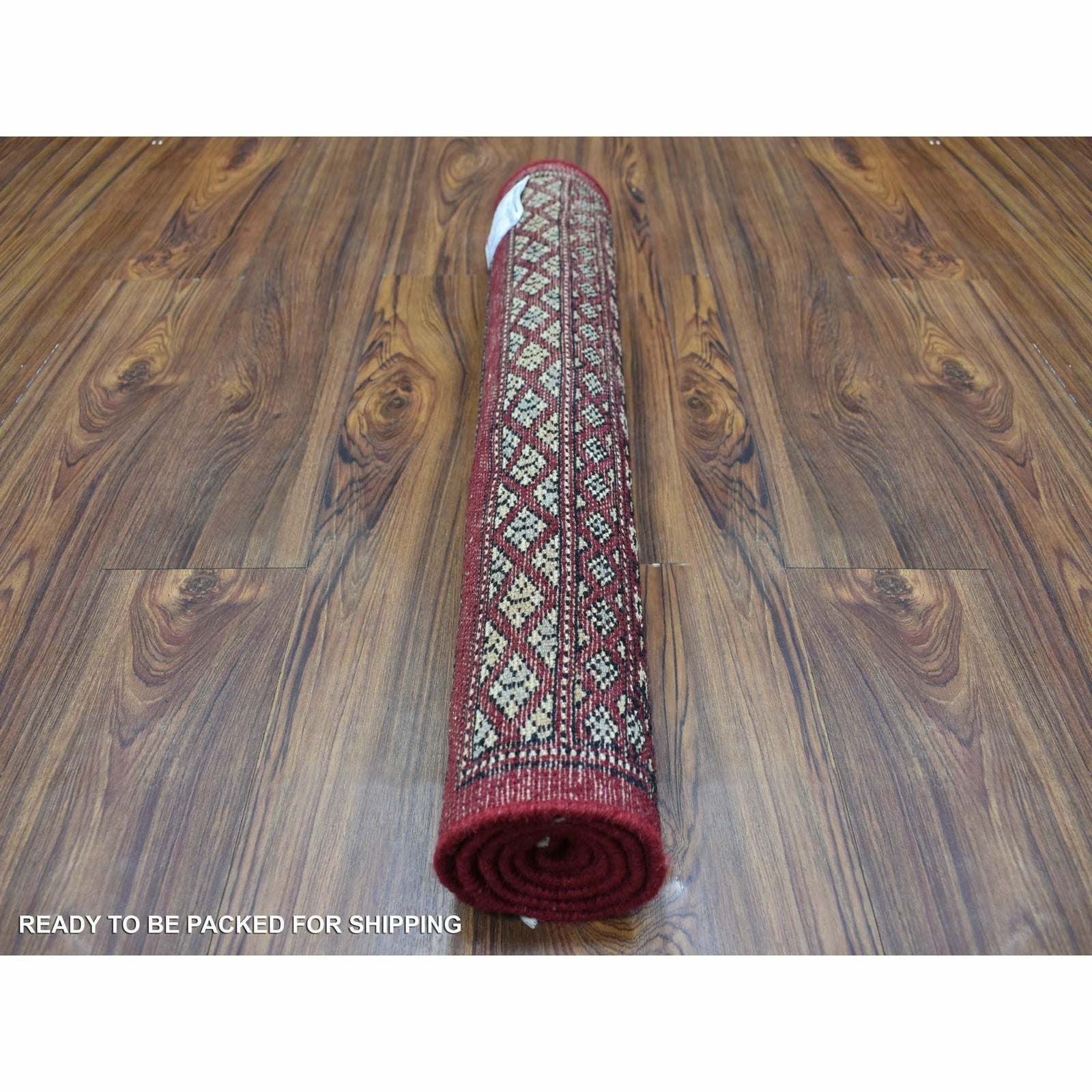 2'6"X3'9" Hand Knotted Mori Bokara Deep Red Pure Wool Oriental Rug