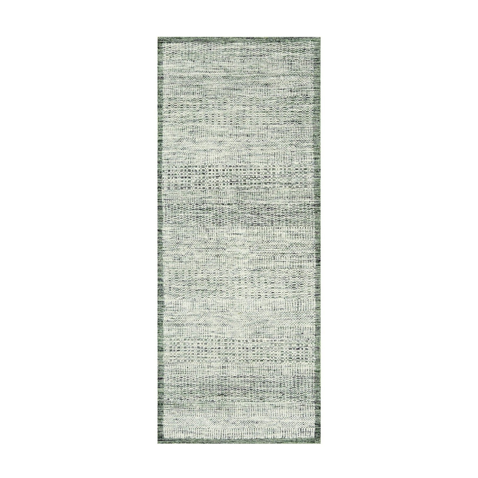 2'6"X6' Green Hand Knotted Rug Wool Oxidized Grass Design Runner Oriental