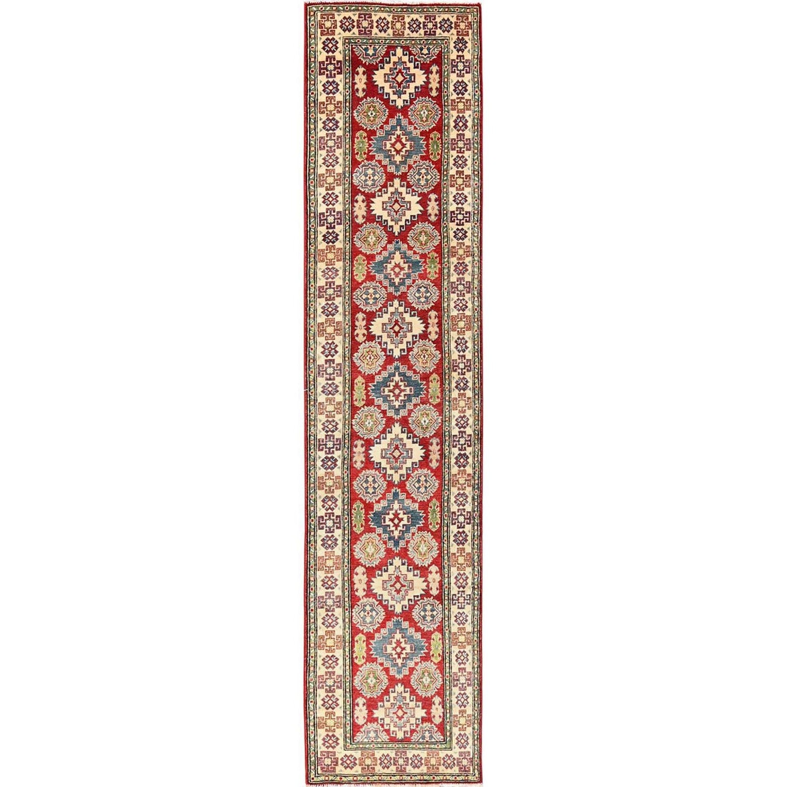 2'7"X12'8" Red Kazak With Geometric Design Hand Knotted Rug Wool Runner