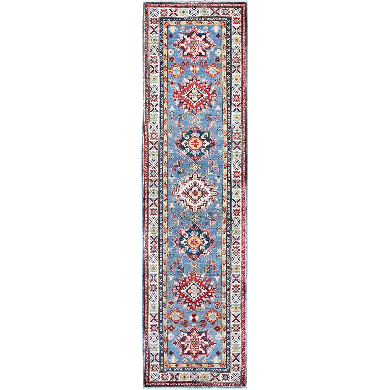 2'7"X9'9" Blue Kazak With Tribal Design Soft Wool Hand Knotted Runner Rug