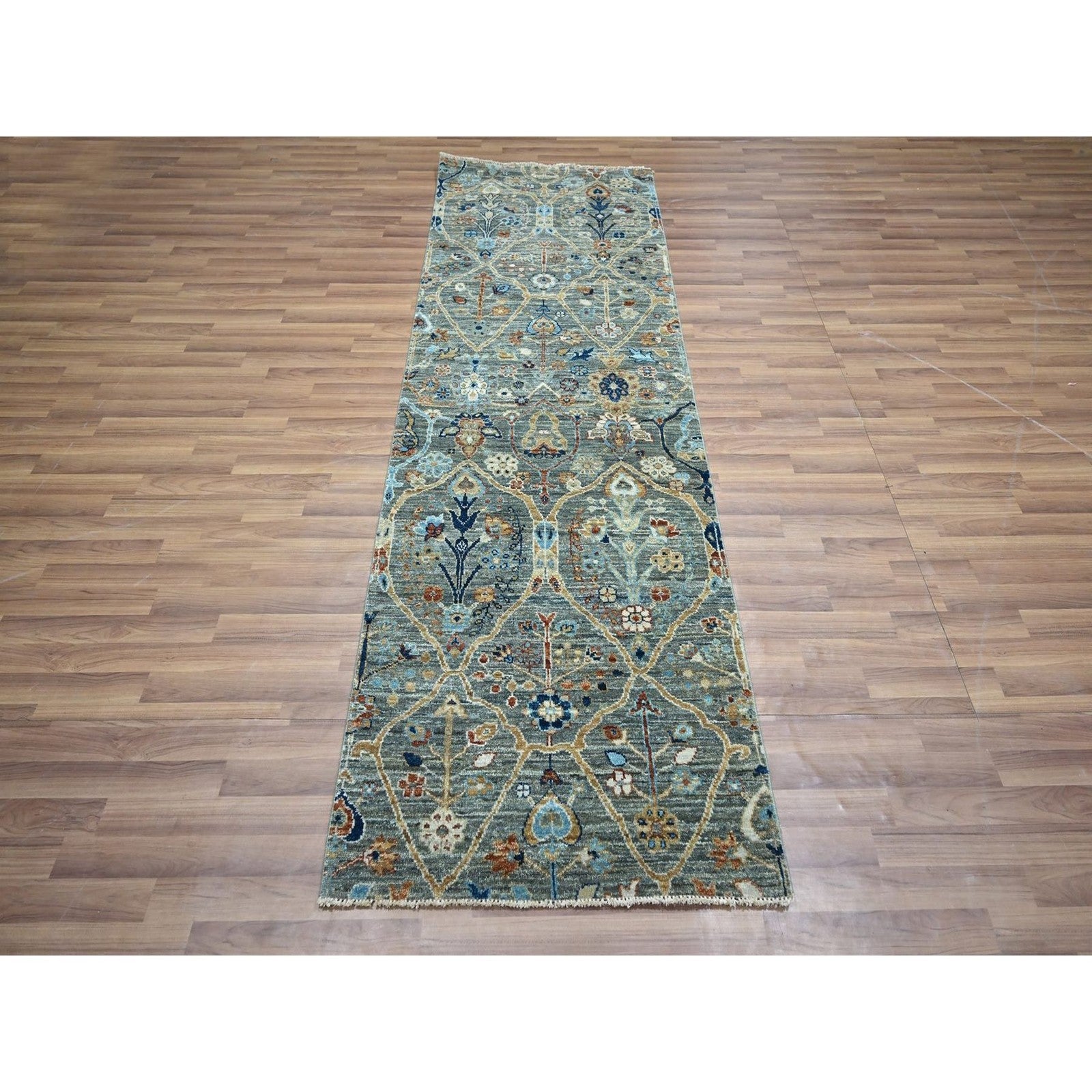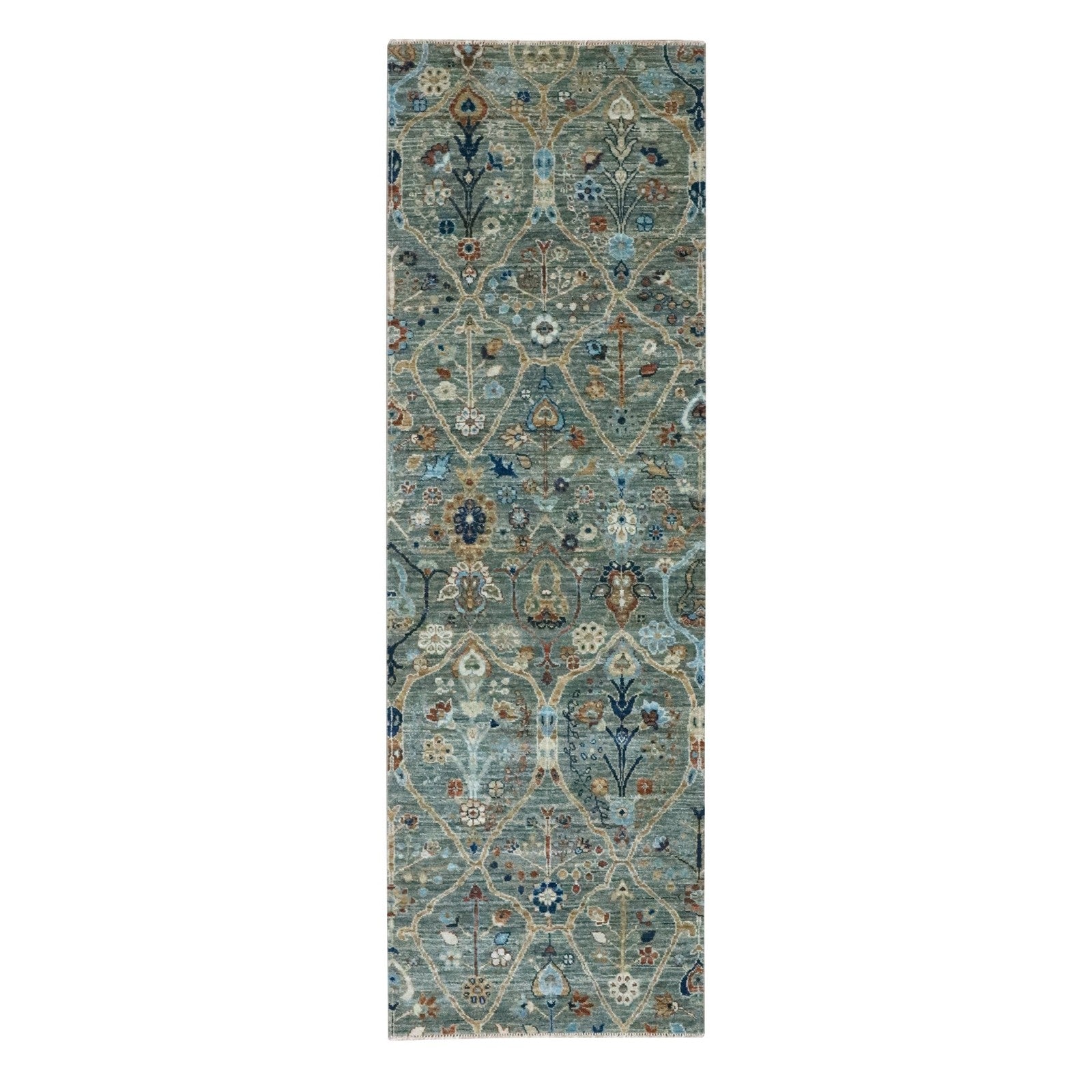 2'8"X8'1" Green Hand Knotted Wool Rug Trellis Borderless Garden Design
