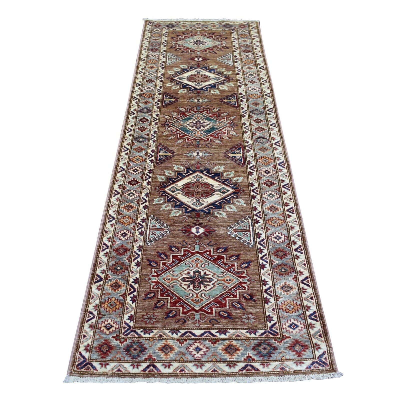 2'8"X8'6" Brown Afghan Super Kazak Hand Knotted Ghazni Wool Runner Rug