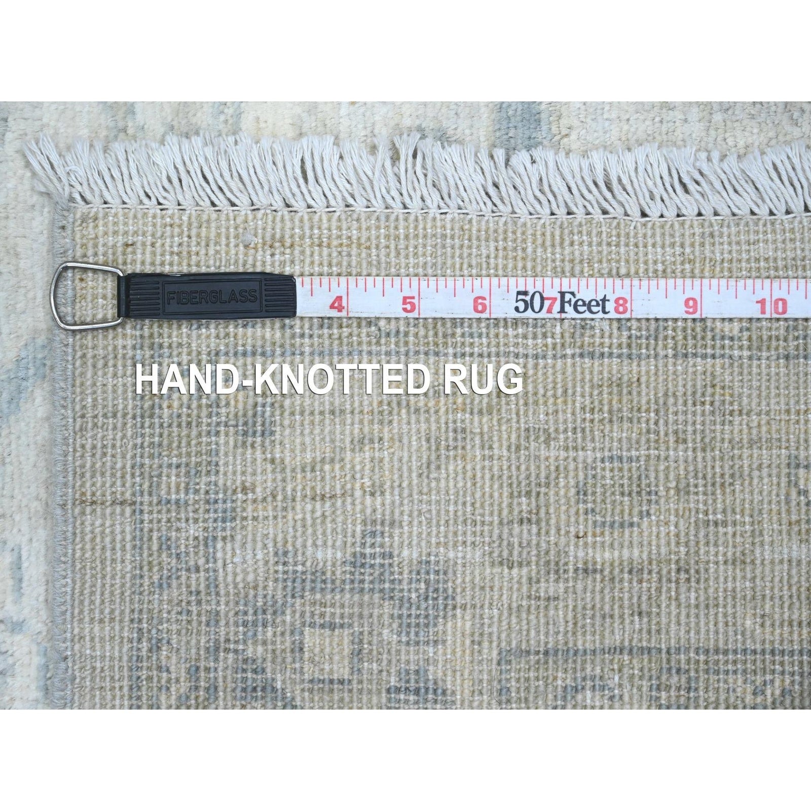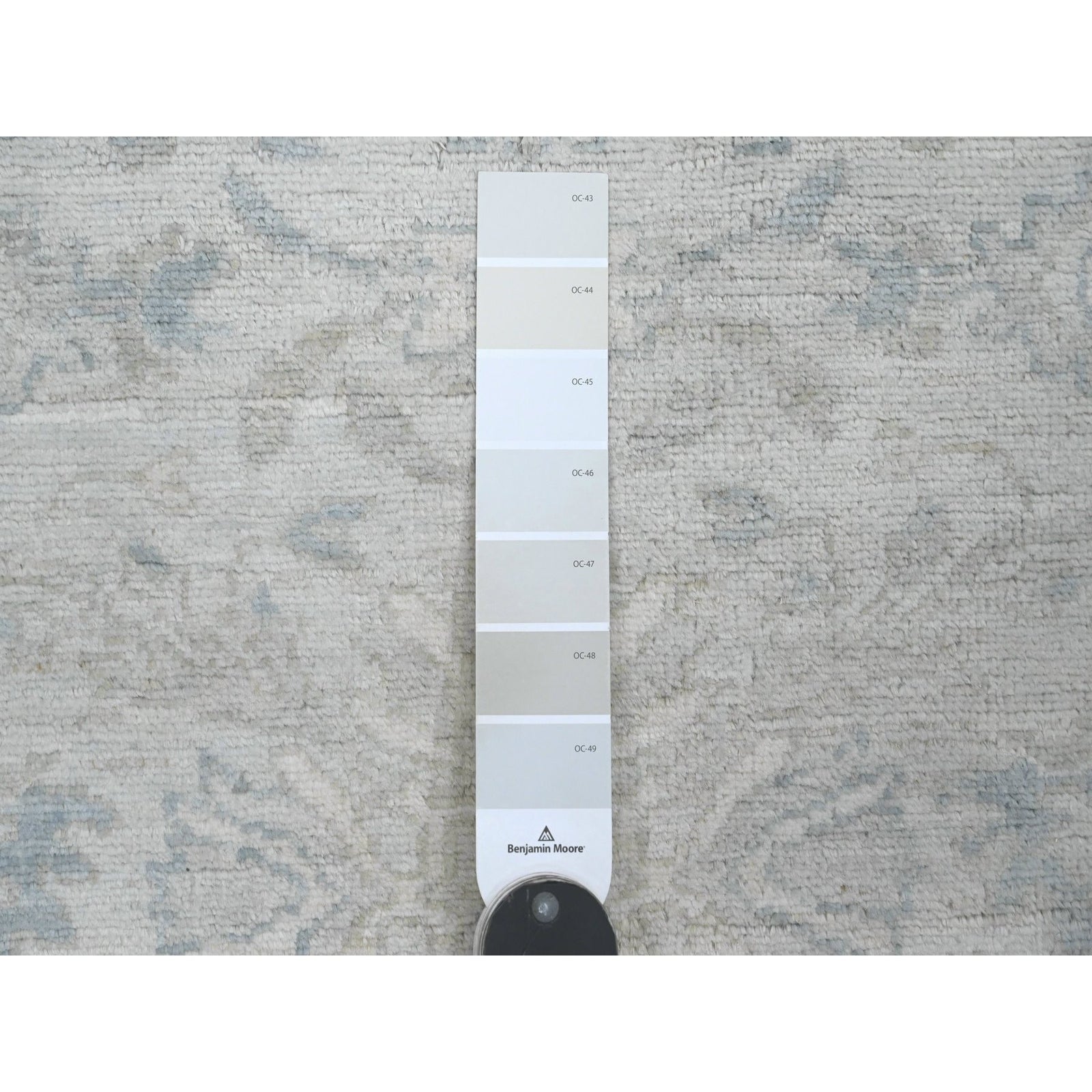 2'9"X9'10" White Heris All Over Design Pure Wool Hand Knotted Runner Rug