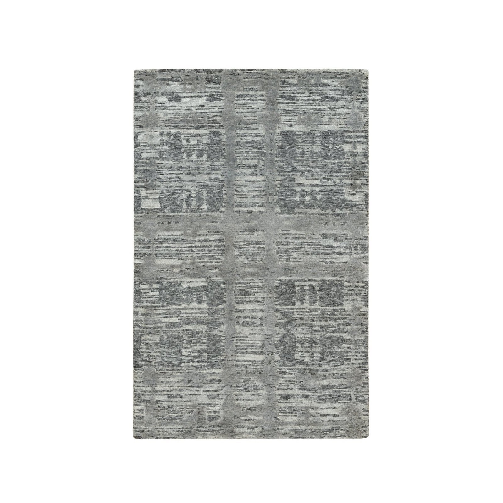 3'X5'1" Gray Modern Design Hand Spun Undyed Natural Wool Hand Knotted Rug