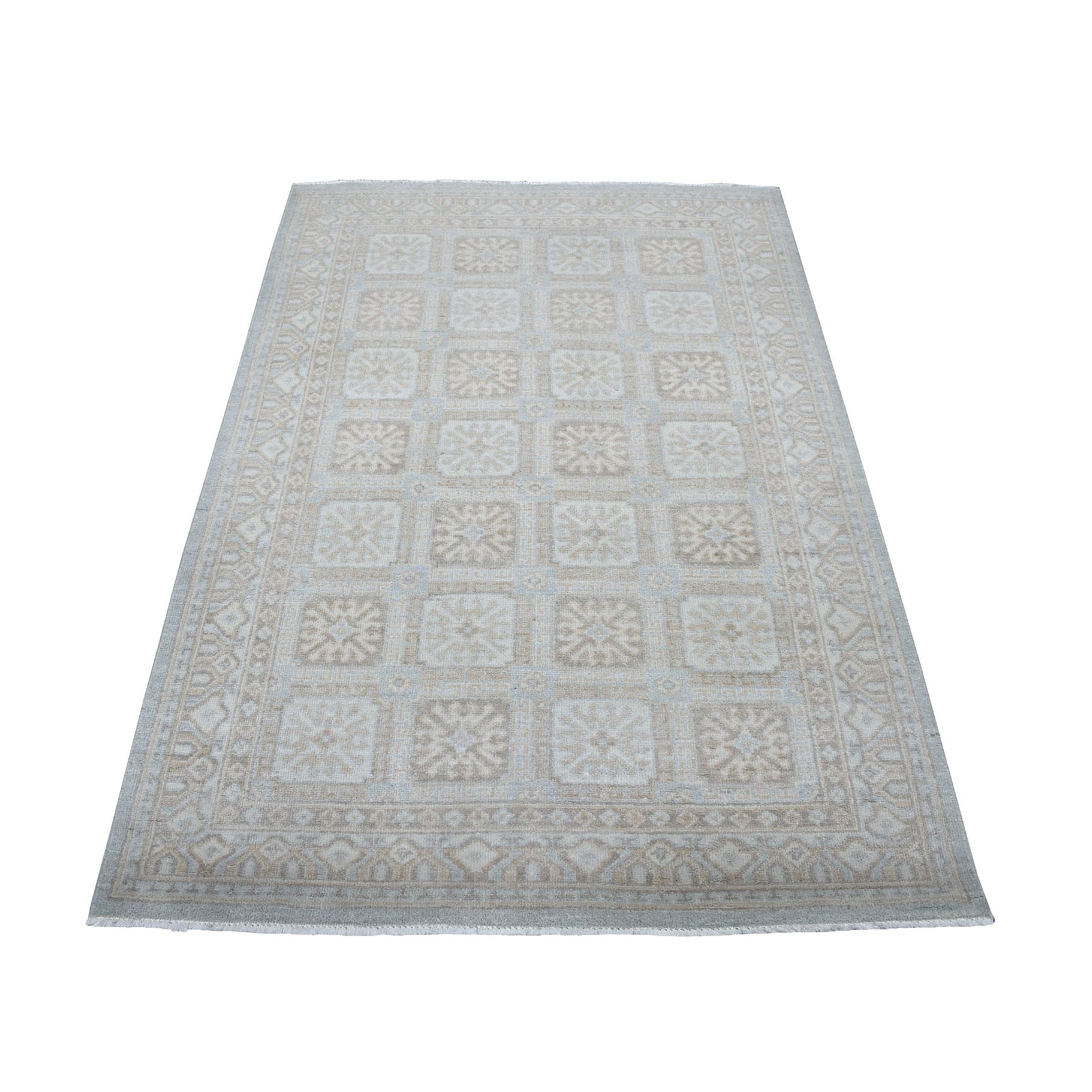 4'1"X6'1" White Wash Peshawar Mahal Design Pure Wool Hand Knotted Rug