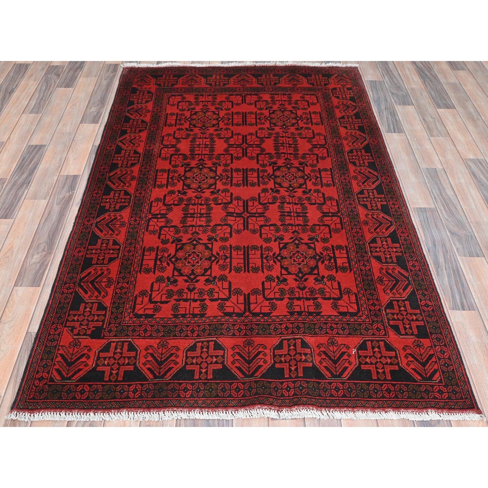 4'2"X6'5" Red Afghan Andkhoy Wool Hand Knotted Oriental Rug