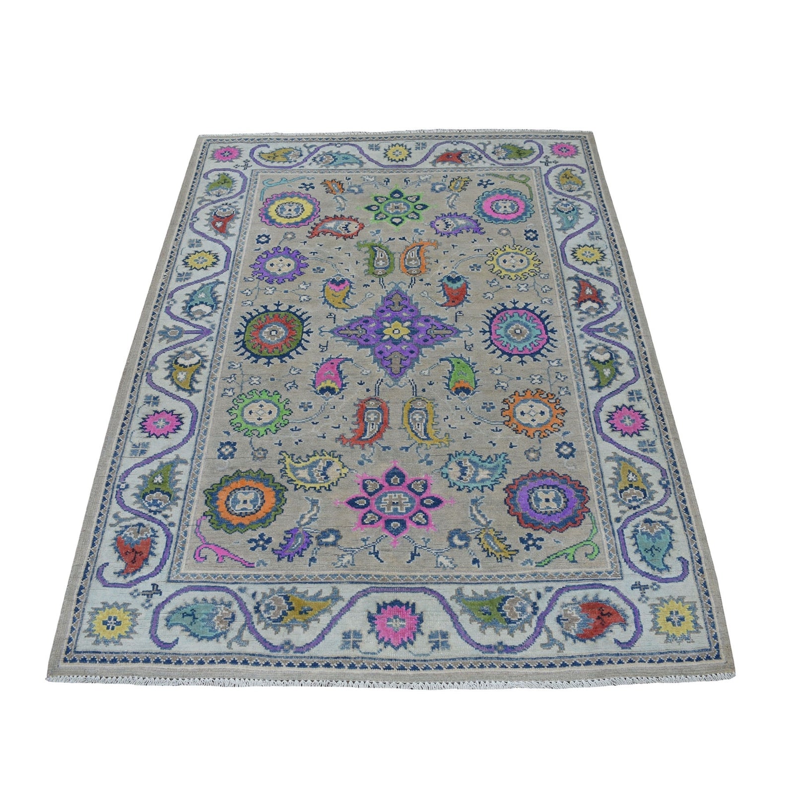 4'X5'9" Colorful Gray Fusion Kazak Pure Wool Hand Knotted Oriental Rug