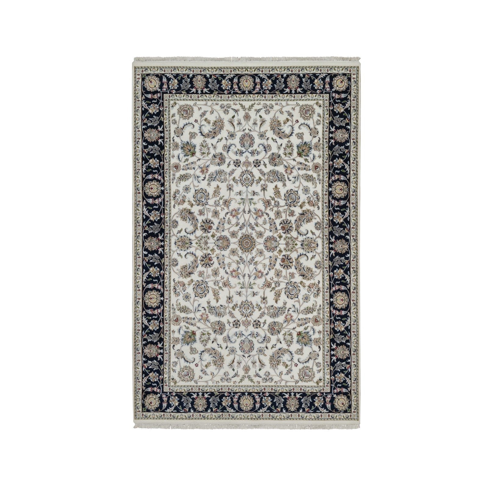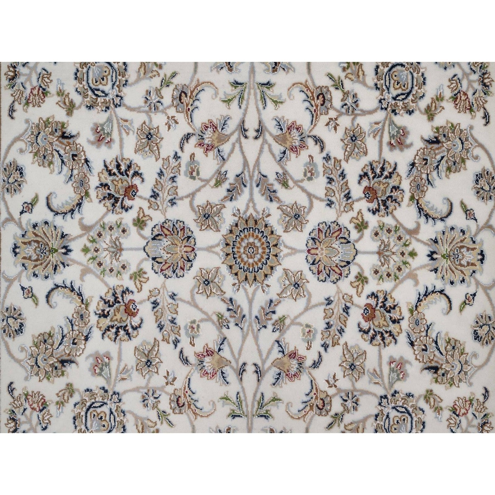 5'9"X9'2" Ivory Wool And Silk Nain With Flower Design Hand Knotted Rug