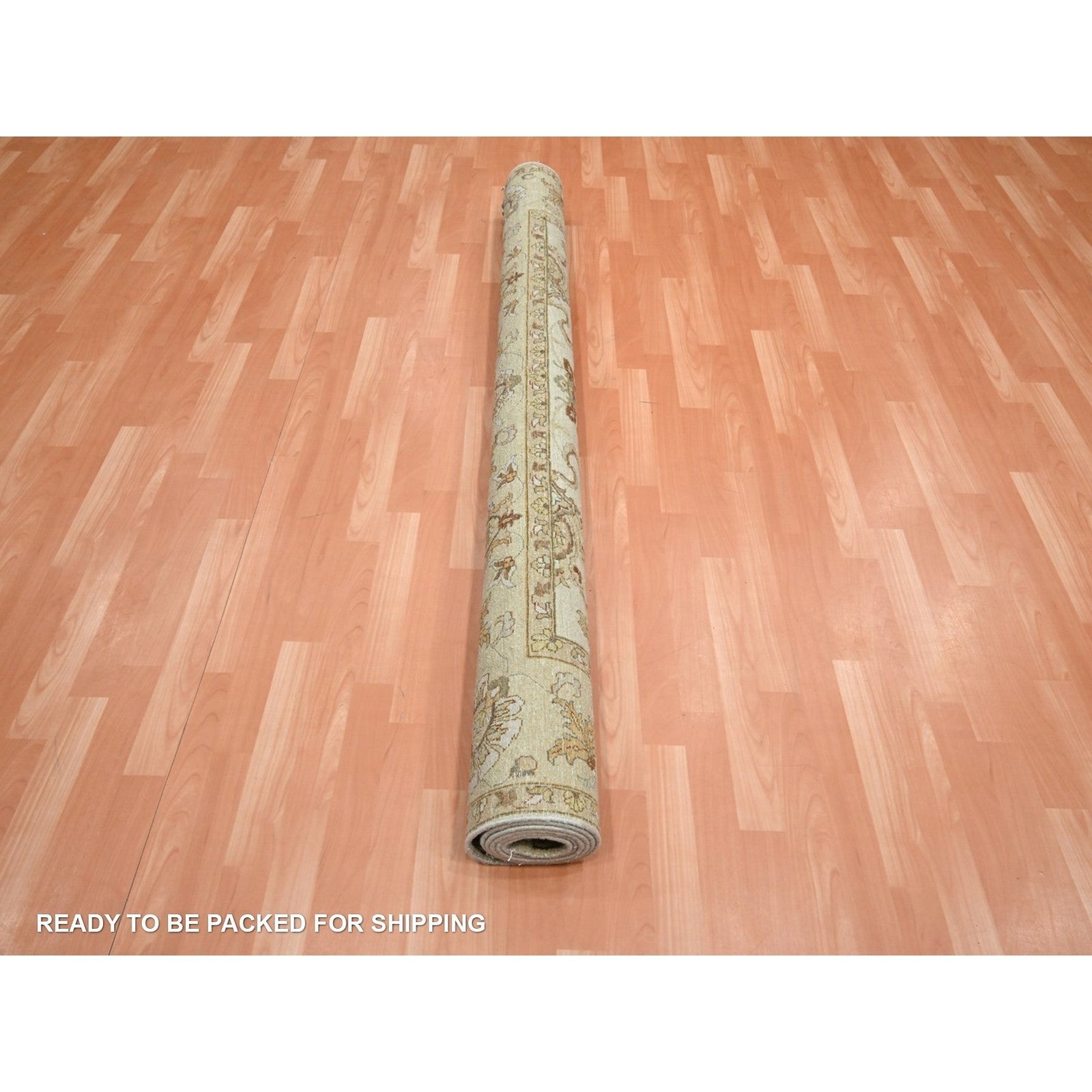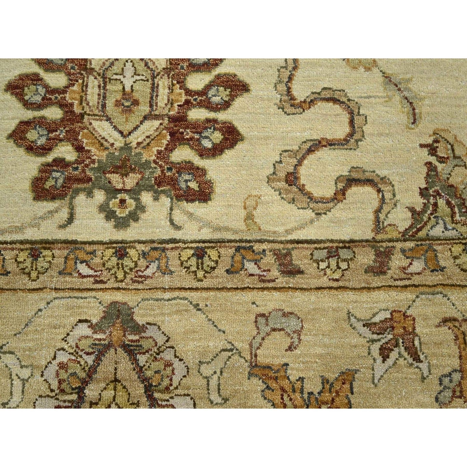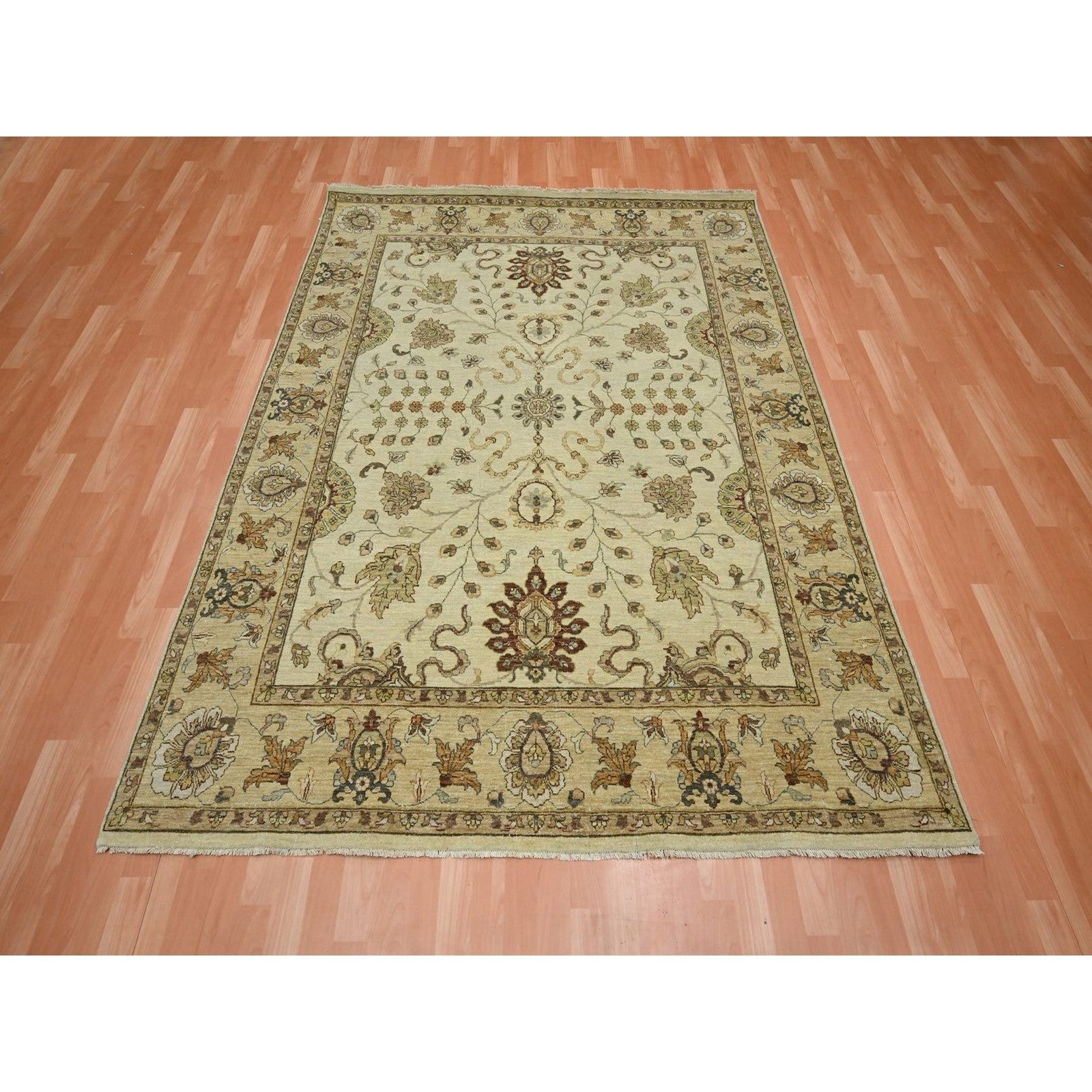 6'5"X8'1" Ivory Hand Knotted Leaf Pattern Agra Ziegler Design Wool Rug