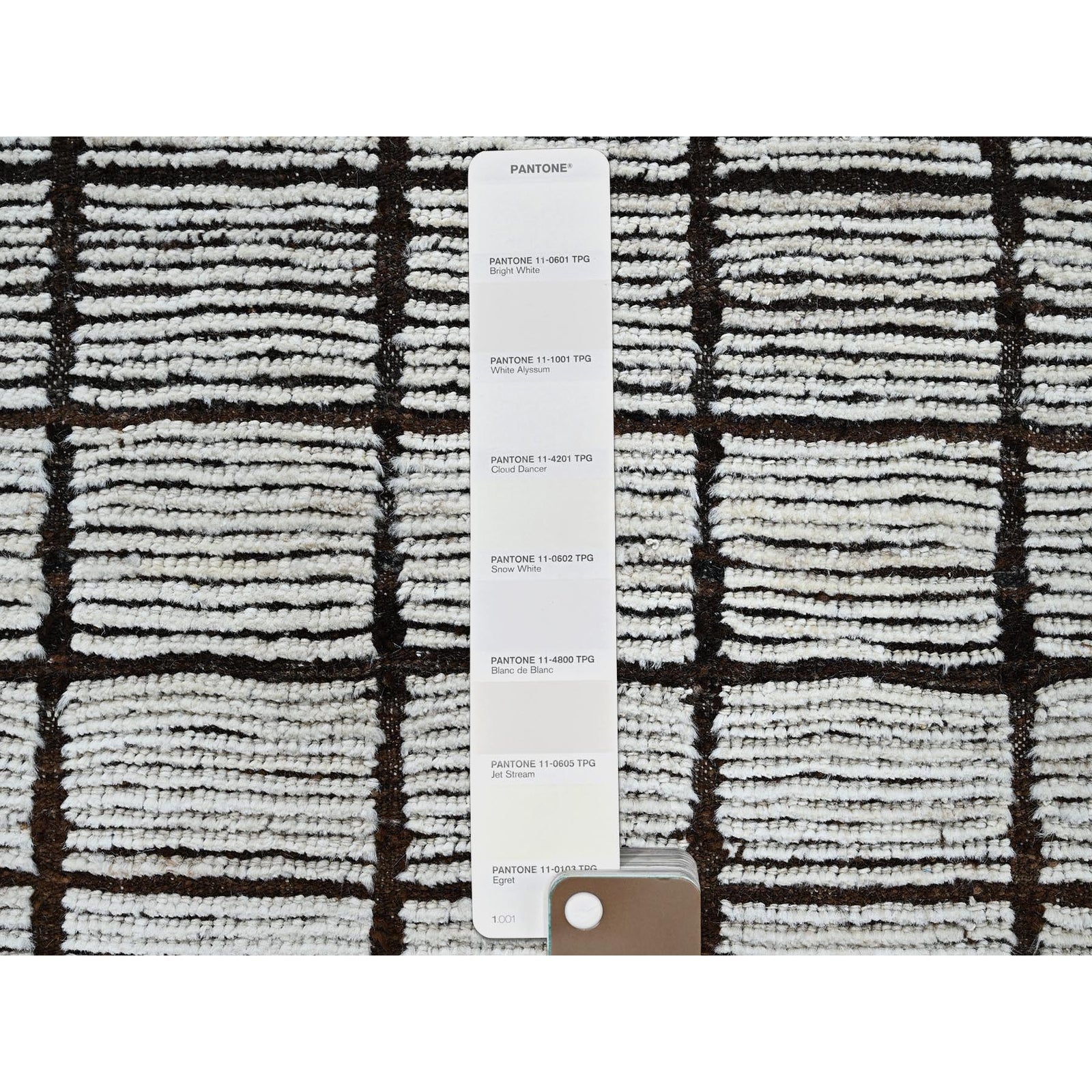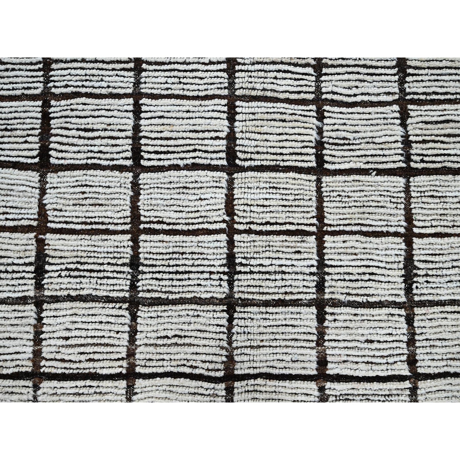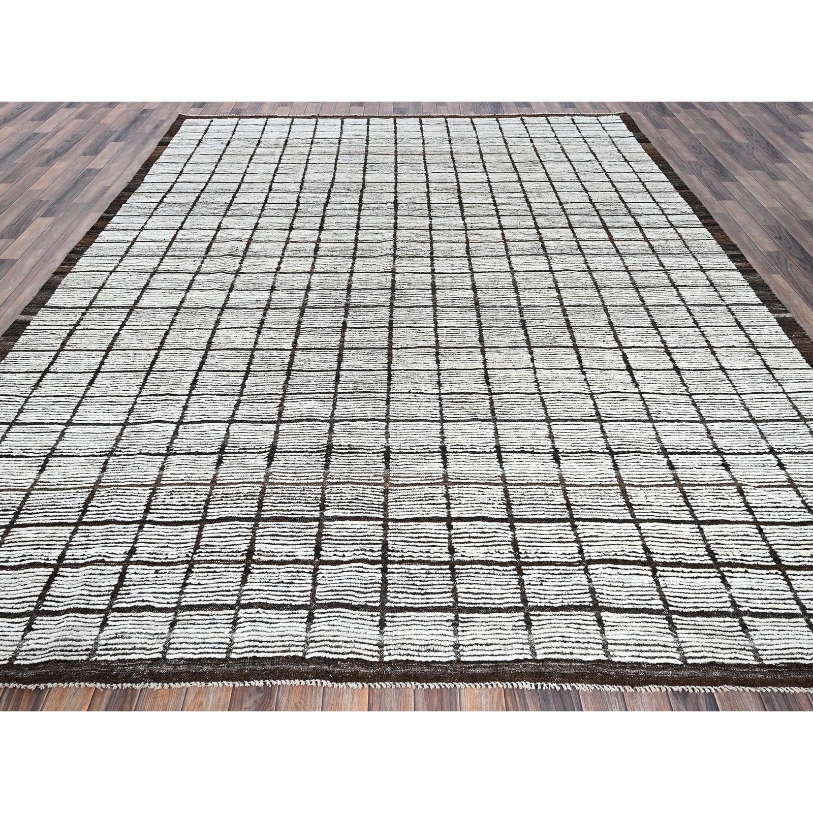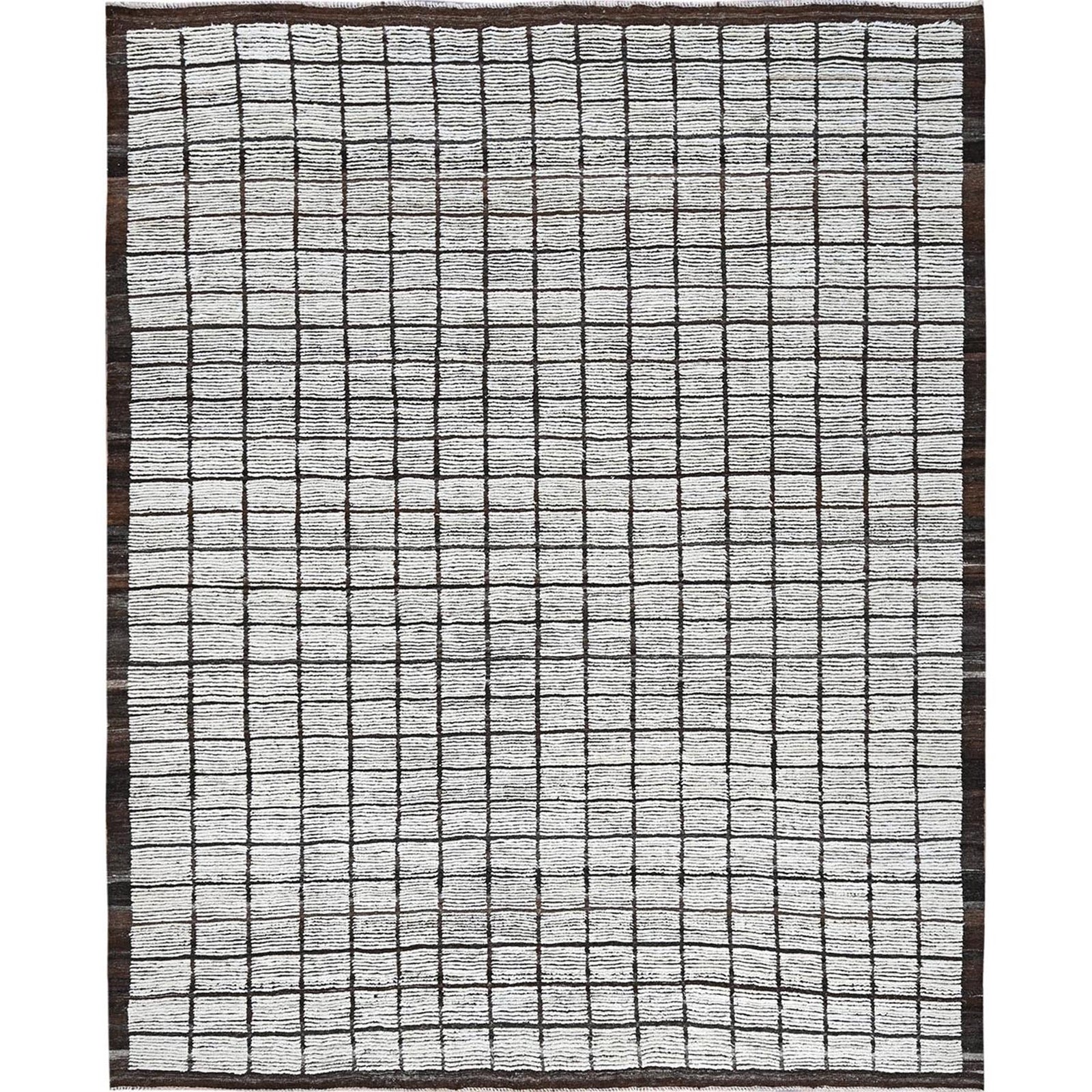 9'7"X11'8" White Moroccan Weave With Grid Design All Wool Hand Knotted Rug