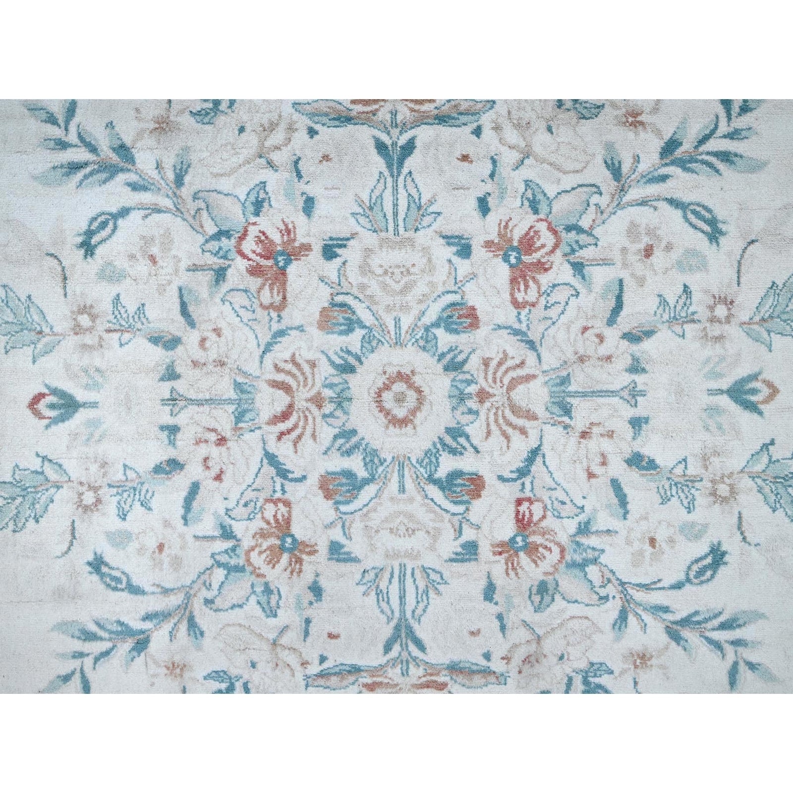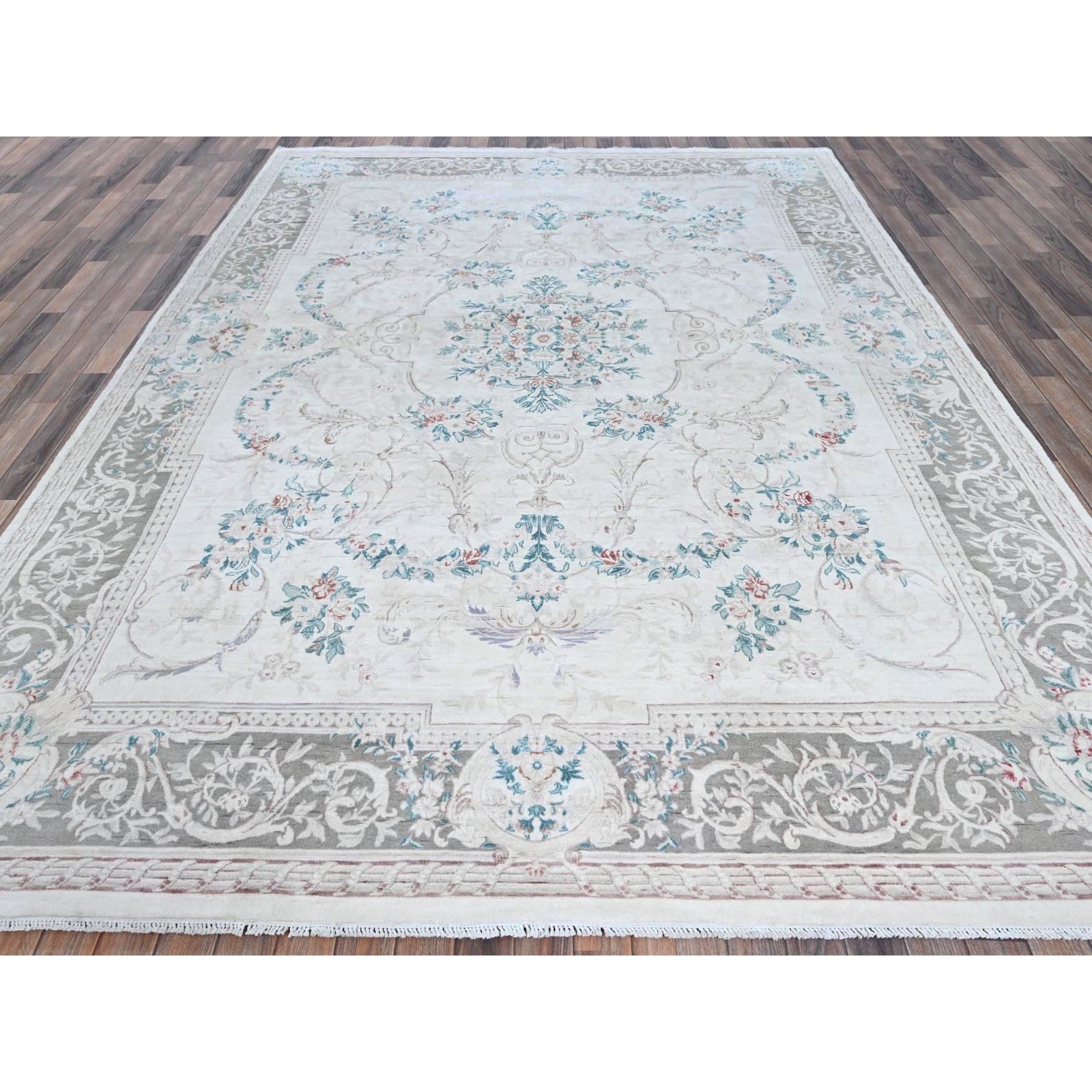 9'X11'9" White Aubusson Design Zoroastrian 300 Kpsi Wool Hand Knotted Rug
