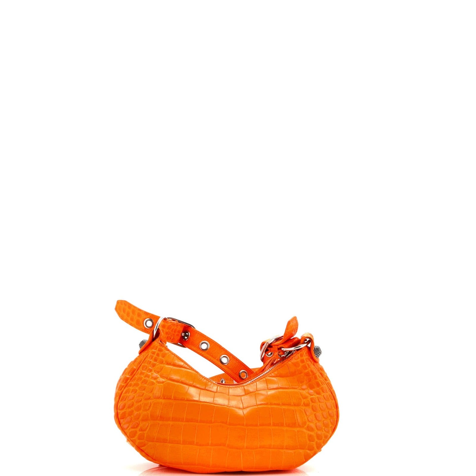 Balenciaga Le Cagole Giant Studs Shoulder Bag Crocodile Embossed Leather Small