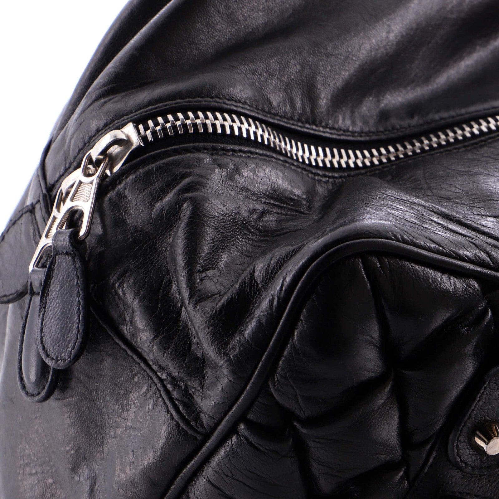 Condition: Good. Exterior: heavy corner wear, creases, scuffs, cracking. Handles/Straps: cracking. Interior: perfume odor, scuffs, discoloration. Hardware: scratches
