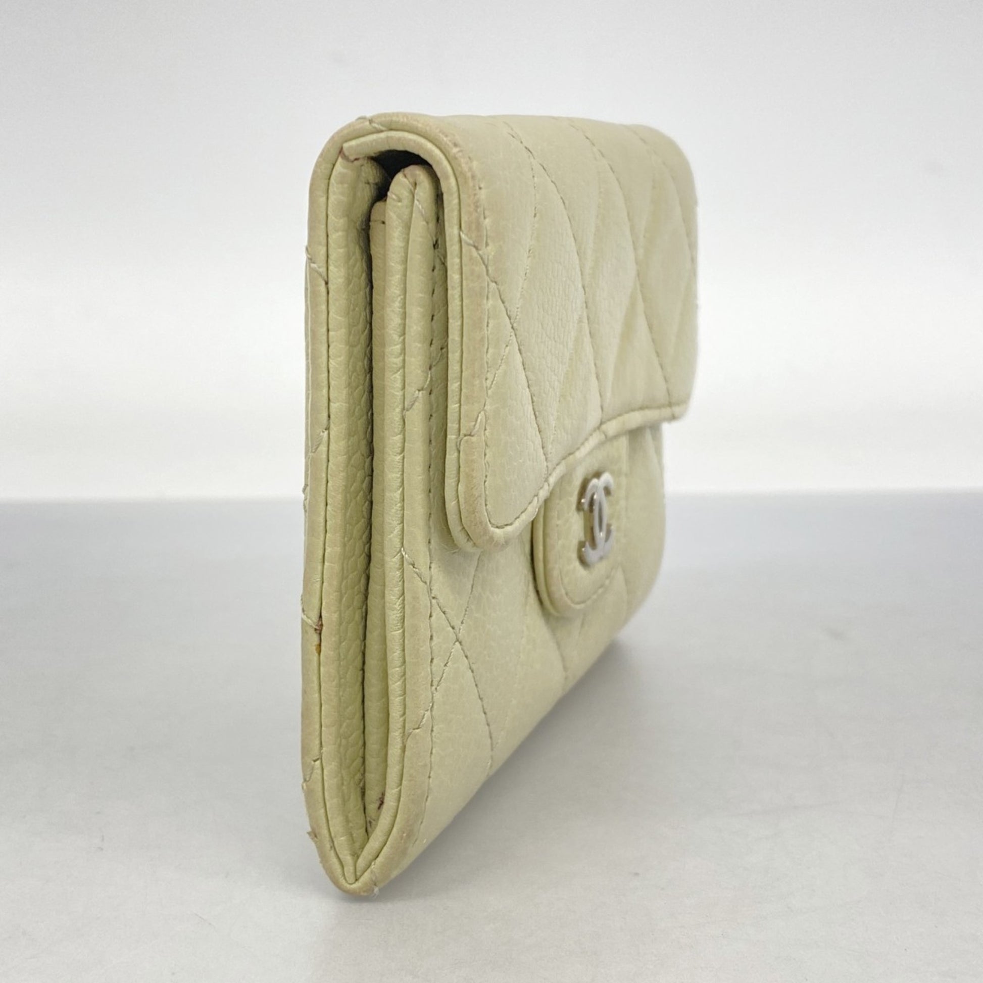 Chanel Matelasse Business Card Case In Beige Caviar Leather