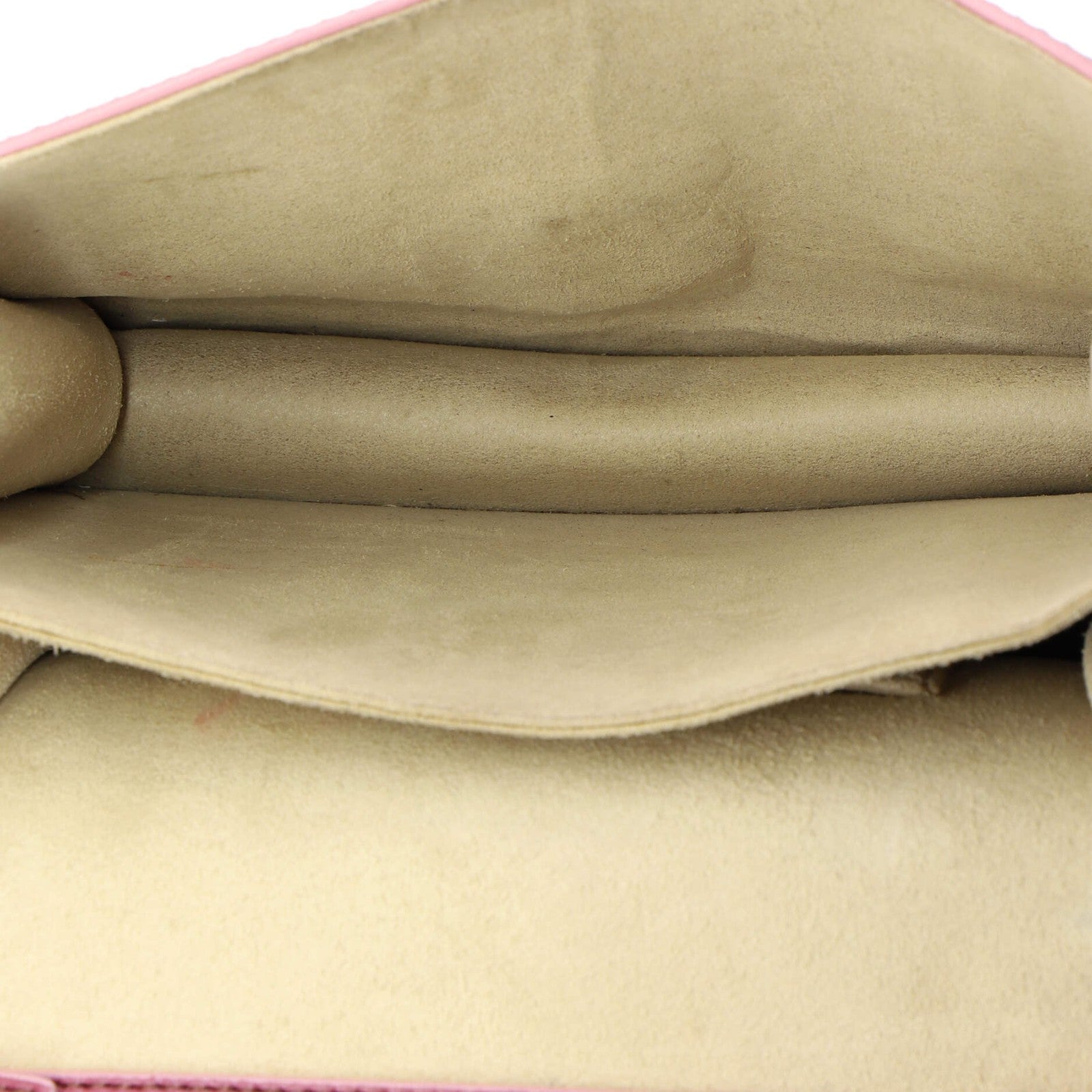 Condition: Good. Exterior: cracking, edge wear, corner wear, minor scuffs, minor creases. Handles/Straps: cracking. Interior: cracking on flap opening corners, scuffs, stains, discoloration. Hardware: scratches, tarnished