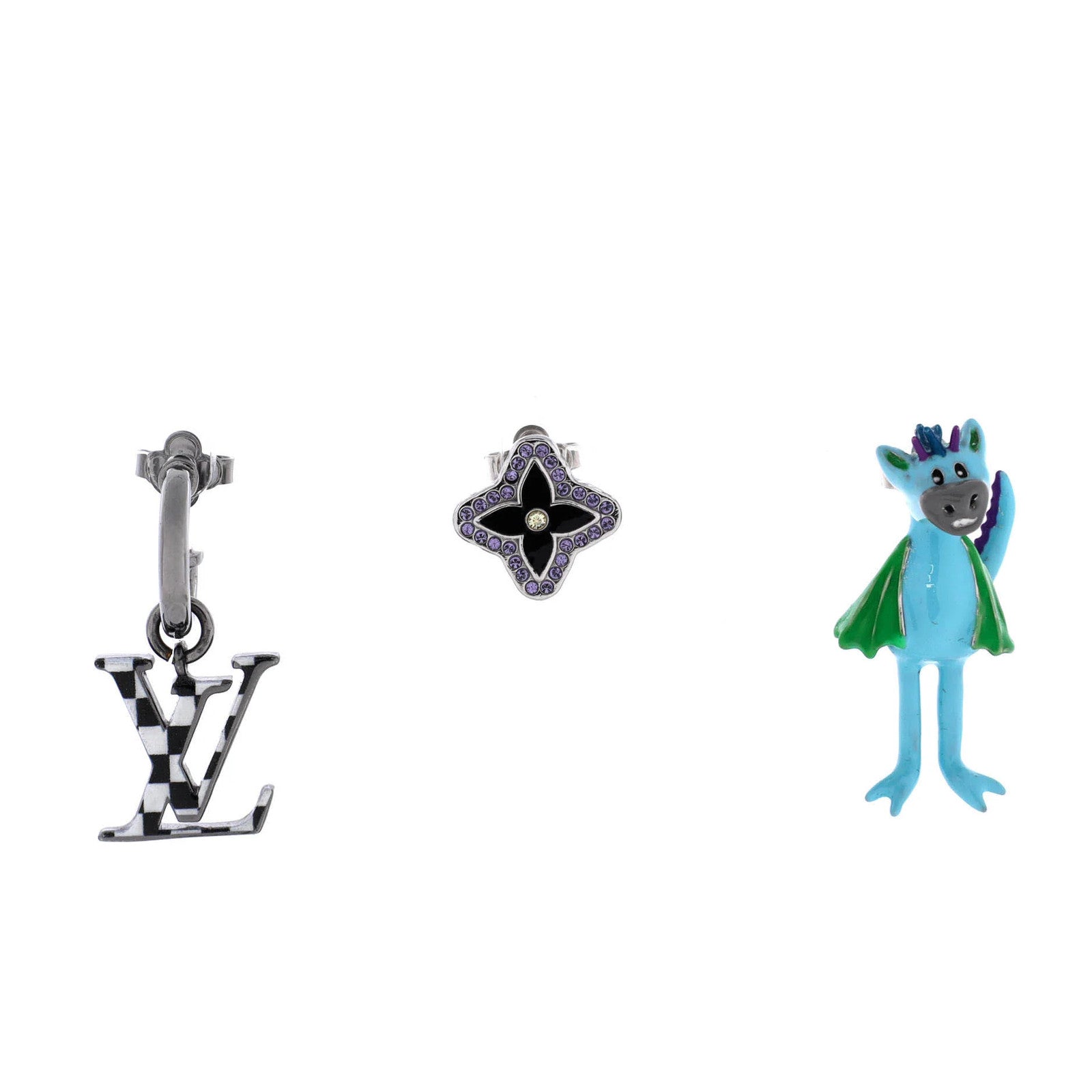 Model: LV Friends 3 Earrings Set Metal with Enamel and Crystals